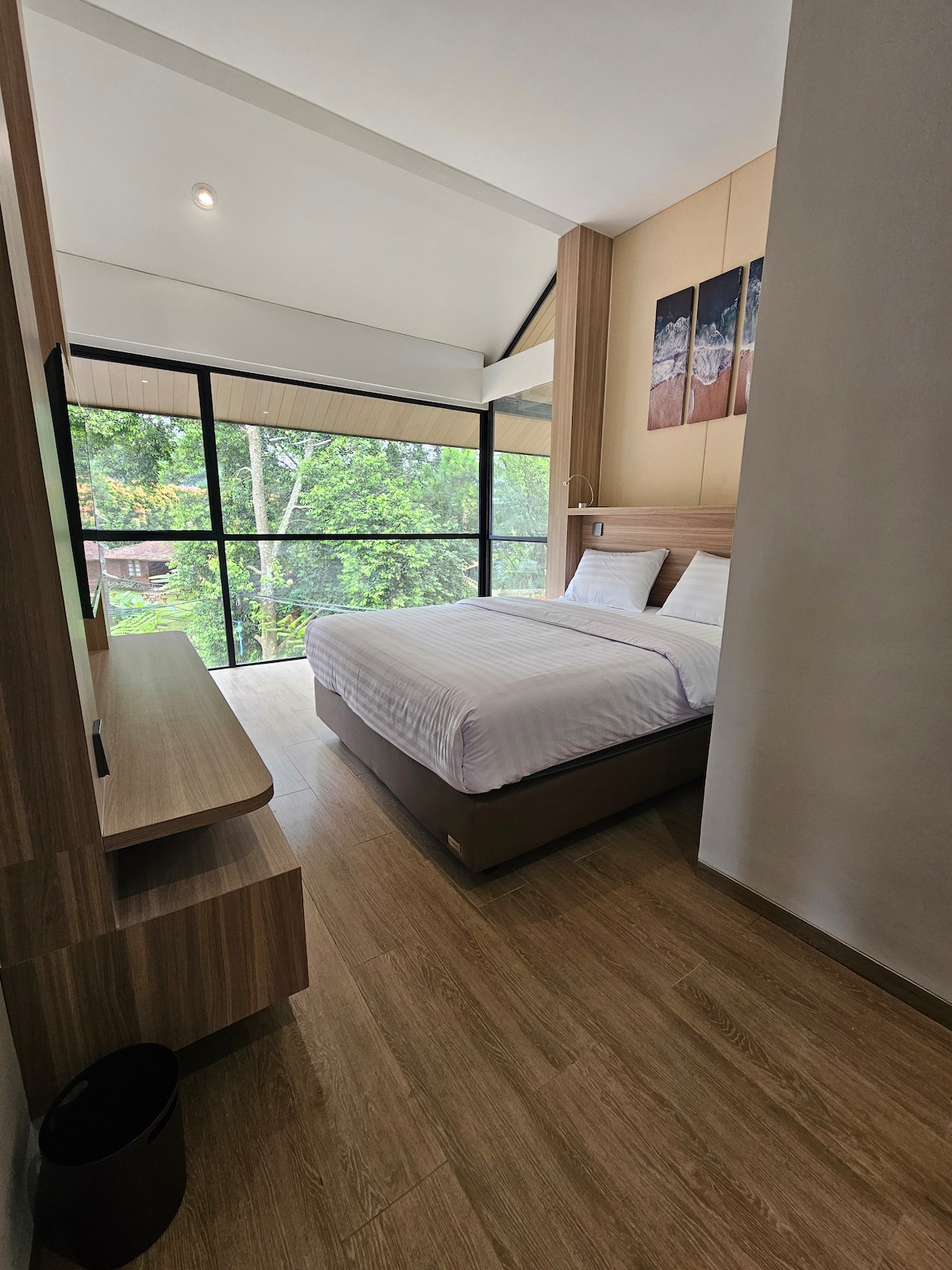 Wangiterrace, en fredelig villa i åssiden som ligger i den frodige vegetasjonen i Dago, Bandung. Omgitt av høye trær og naturlig skjønnhet, byr på tåkete morgener, frisk fjelluft og et kjølig klima. Enten du nyter en rolig morgen på terrassen eller utforsker nærliggende kafeer og naturstier, er WangiTerrace designet for avslapning og kontakt med naturen. Villaen vår er ideell for familier, par eller små grupper, og blander komfort og ro i et av Bandungs mest naturskjønne nabolag.