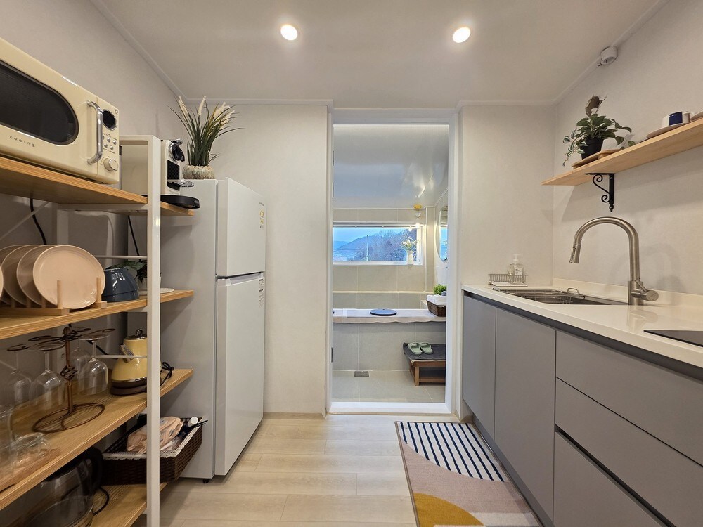 Eungok Pension, et sted som fanger roen i sølv. Det er et pensjonat i enden av en landsbygda med utsikt over reservoaret i bakgrunnen. Det er et varmt sted som jeg har designet og bygget selv. Hvis du ønsker å føle helbredelsen i naturen, er dette stedet. ✔️Annonse Bruk venstre enhet og venstre terrasse. ✔️Innsjekking og utsjekking Innsjekking kl. 15.00, utsjekking kl. 11.00. ✔️Bad og hygieneprodukter To håndklær per person ✔️Kjøkken Ikke bruk kjøkkenet til å lage mat med sterk lukt (fisk, kjøtt osv.) Det er en parkeringsplass foran ✔️overnattingsstedet. ✔️Trådløst nettverk er tilgjengelig. ✔️Interessepunkter Avstand – Geumpyeong-reservoaret: 3 km (flott for en spasertur) – Gimje Geumsansa-tempelet: 4 km. – Gimje stasjon: 18 km. 🙏🏻 Kapasitet: tre personer Opptil ti personer er tillatt, og tilleggsgebyret er 10 000 won. – 24 måneder ~ voksen: 10 000 KRW – Mindre enn 24 måneder: gratis 🙏🏻Betalte alternativer Grill: 20 000 KRW Bålpanne: 20 000 won Gi oss beskjed før innsjekking hvis du kommer til å bruke den. 🐶Instruksjoner for kjæledyr – Små hunder (5–7 kg eller mindre) er tillatt. – Middelsstore og store hunder er ikke tillatt.