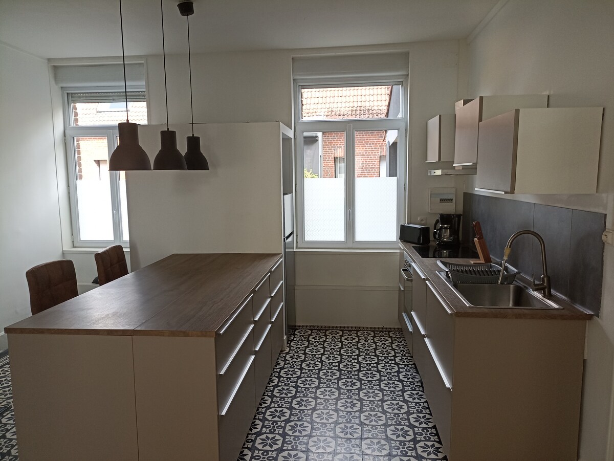 4,9 av 5 gjennomsnittlige vurderinger, 114 anmeldelserHus for 6 personer nær stadion Pierremauroy/Lille