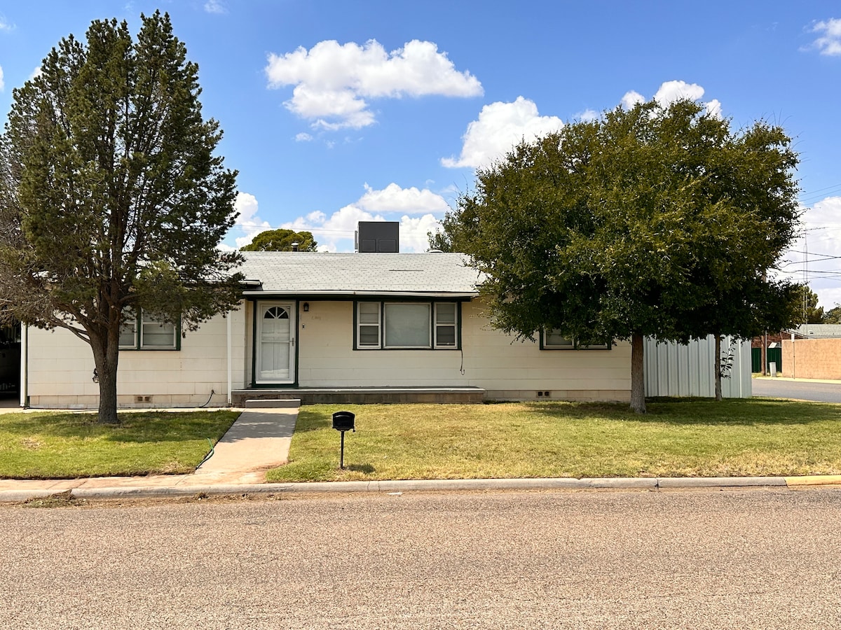 Velkommen oljearbeidere og reisende helsepersonell! Helt nytt hjem med fire soverom, to bad, en stor inngjerdet bakgård, garasje og rengjøringstjeneste. Perfekt for deg og teamet ditt i Pecos – bestill nå!"