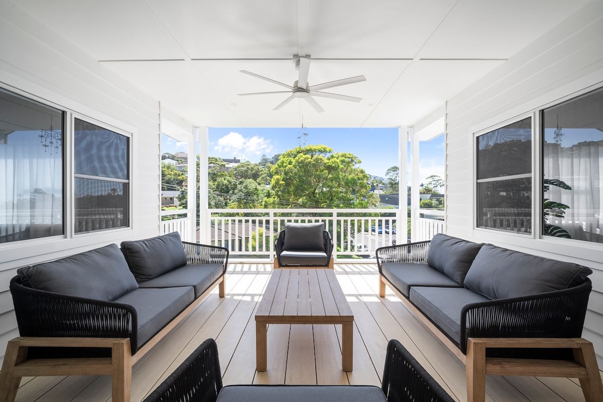 Wake up to uninterrupted ocean views, step off the back deck and you're at Easts Beach! Sleeps 8 across three bedrooms, with polished timber floors, a fully equipped kitchen, large deck with BBQ, fast Wi-Fi and a games room (ping pong anyone?). All linen provided — arrive and switch off. Walk to the blowhole, harbour, cafes and restaurants in minutes. Whether it's a family getaway or a weekend with friends, this is coastal living at its best. The perfect South Coast escape.