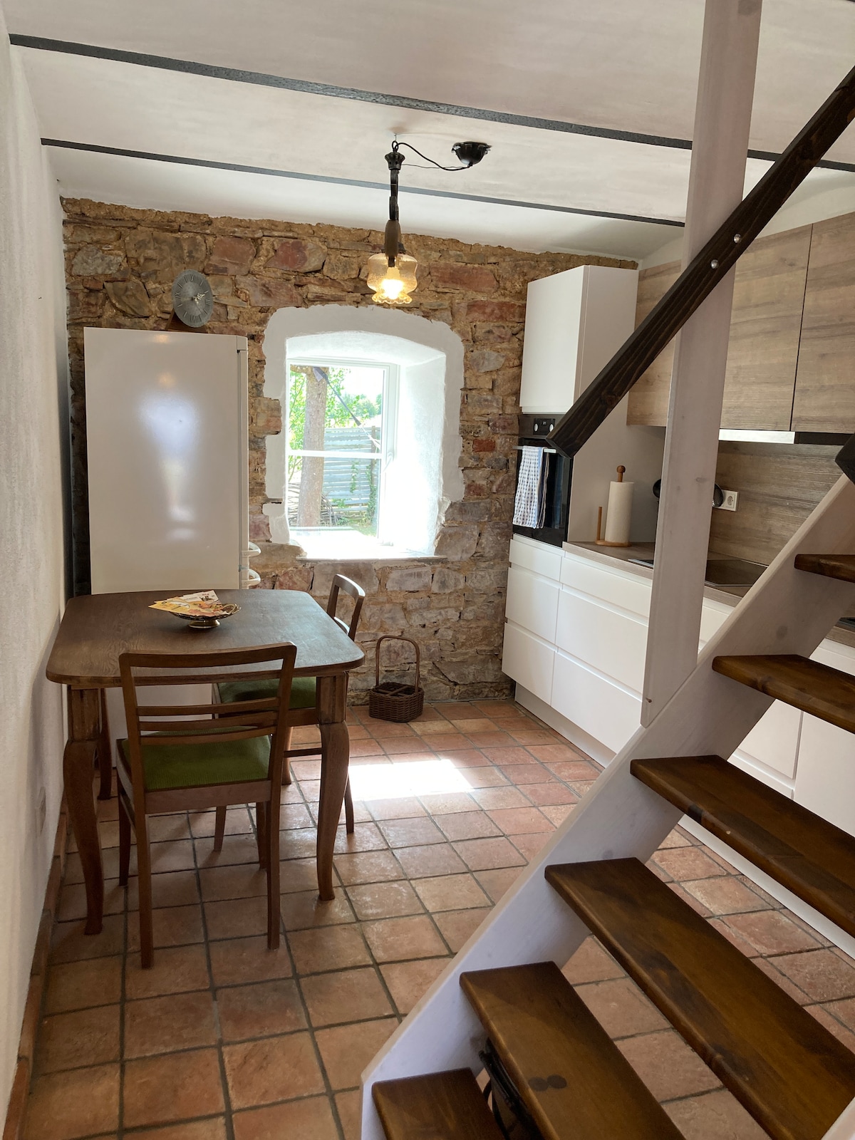 Unn deg et besøk i vårt bindingsverkshus Anno 1690, renovert i 2019, i den svært rolige gamlebyen i Stromberg, rett ved Schlossbrunnen nedenfor de tre slottene. Kjøkkenet i 1. etasje ligger spennende nok i den tidligere festningsmuren. Den middelalderske bygningen har fortsatt de typiske bratte eiketrappene, og takhøyden er utenfor normen. Hyggelig opphold i huset og som utgangspunkt for turgåere og syklister... for avslapning og eventyr...