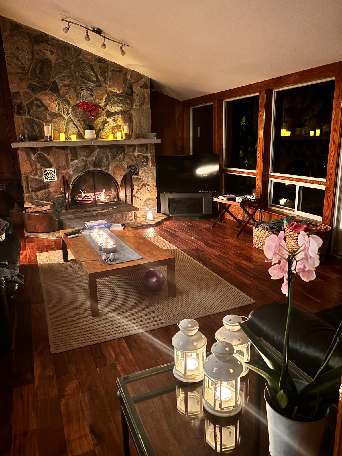 Nyt fiske, svømming og padling 22 km av de grønne og svarte elvene. Padlebåt, kano, 2 kajakker og en SUP er inkludert. Ta den korte fem minutters spasertur inn til byen for iskrem eller nybakte godbiter. Legg deg på den forhøyede terrassen eller i den skjermede verandaen med en god bok. Avslutt kvelden ved peisen ved elvebredden. Dagsopplevelser i nærheten inkluderer fotturer, golf, parker, strender, bryggerier, kasino rama og slalom på Mount St Louis Moonstone og Horseshoe Valley (30 minutter med bil).