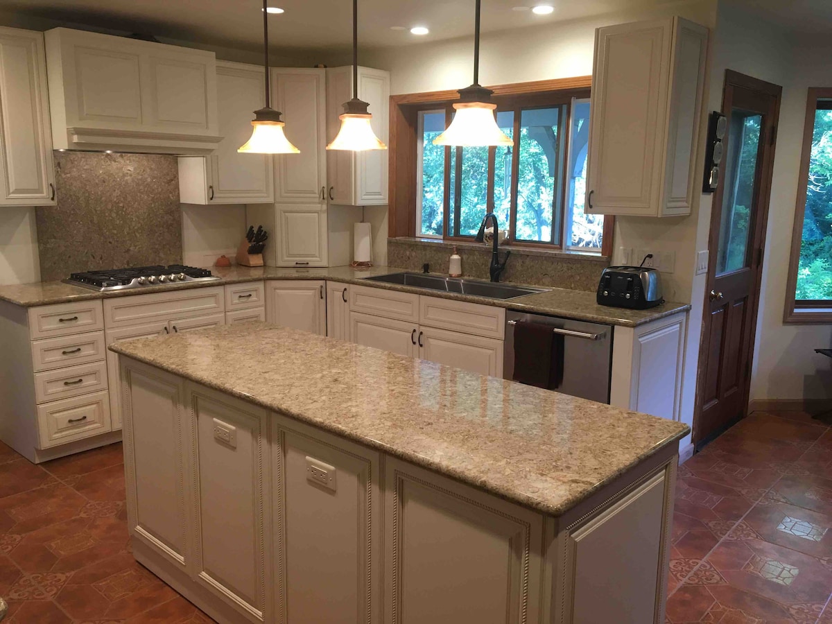 Lad batteriene på dette fredelige og rolige overnattingsstedet. Denne koselige hytta med to soverom (første etasje) er totalrenovert og ligger ved Friess Lake. Nyt verandaen og terrassen like utenfor døren din. Komplett med stekepannestein, bord for seks personer, eller gå ned til den private stranden med bålplass, utemøbler, kajakker eller fisk i innsjøen. Vi er også noen skritt unna Glacial Hills County Park med 140 hektar stier. Flotte høstfarger. CC Ski og aking om vinteren.