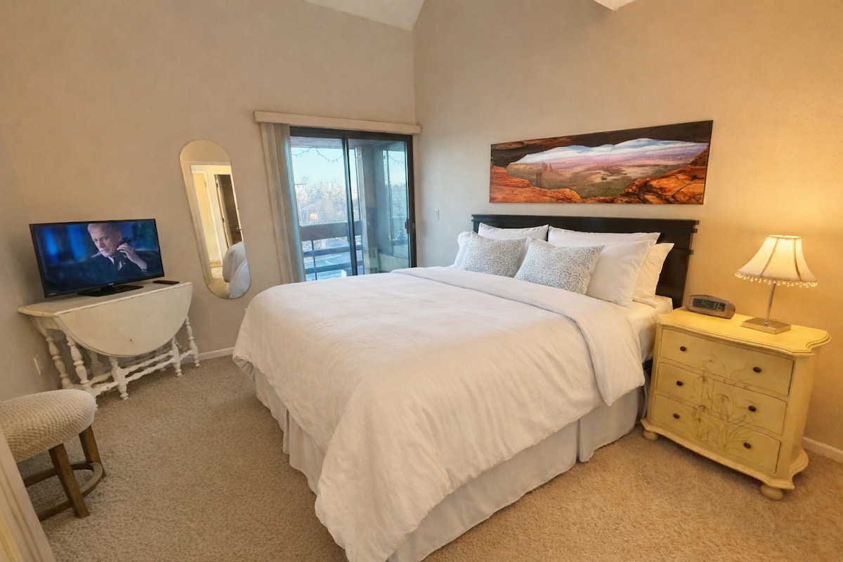 NO PETS ALLOWED. This private condo is only 5 minutes from golfing, tennis, and skiing. You’ll love this place because of the ambiance, the outdoor balcony, the neighborhood, the hot tub downstairs, the comfy bed, the fast WiFi, and access to HBO, Showtime, Cinemax, and Netflix accessibility both rooms. This place is great for couples, solo adventurers, and business travelers. Garage maximum fit is mid sizes SUV’s. No parking available for larger vehicles. Short Term Rental Permit is WSTR21-0023