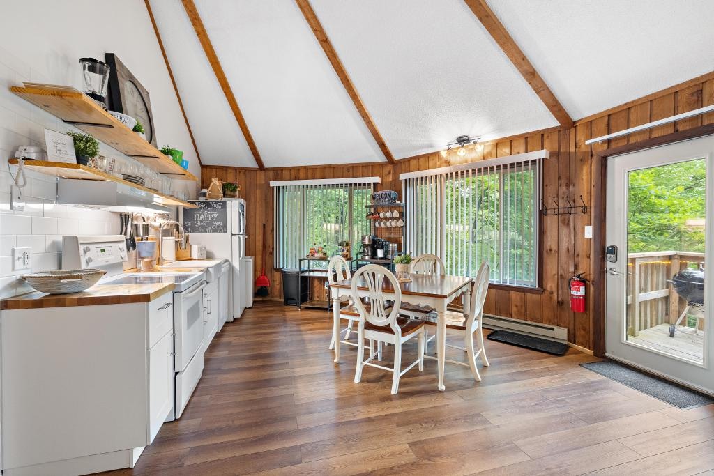 Dette er en helt ny bygning som er tilgjengelig for bestilling for fjellferien din! Det er tre soverom, to bad og et tak fullt av solcellepaneler. Huset har vakre tregulv, betongbenker, T-banefliser, apparater i rustfritt stål og moderne møbler. Gjestene vil forelske seg i verandaen og lyden av bekken i bakgrunnen. All energi som brukes på stedet, genereres rent og fornybart. For elbileiere ligger et 50 amp stikkontakt ved kjøringen for å lade opp.