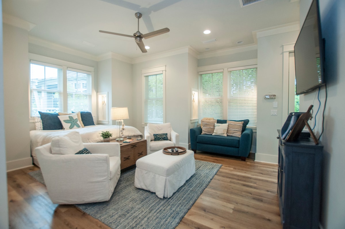 Dette bedårende vognhuset, en del av Worth the Wait Cottage i Watercolor, kan leies separat utenfor sesongen. Det er den perfekte beliggenheten – i hjertet av Watercolor, bare noen få skritt unna sykkelstien og tilgang til sjøen – det beste fra begge verdener! Nyt alle fasilitetene i Watercolor – Beach Club med sin nye oppussing rett ved stranden. Eller kanskje tilbringe dagen på Camp Watercolor med den nye lazy river og sklier! Så kom inn og nyt ditt hjem hjemmefra :)