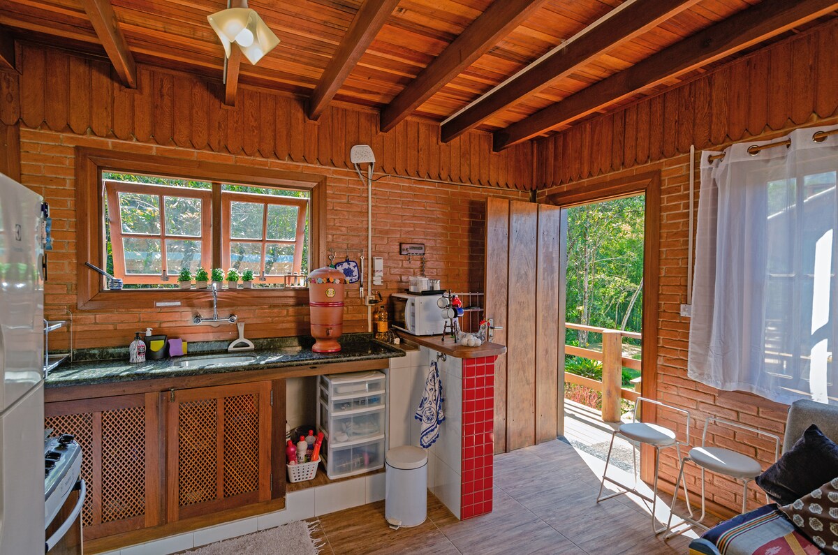 Hytte på 40 m2, i den beste beliggenheten i Maringá, Visconde de Mauá, med boblebad for to, peis, hage, parkering og trådløst internett. Hytta ligger omgitt av grøntområder, fugler og lyden av Rio Preto-elven, som ligger på baksiden av eiendommen. Den er romantisk, koselig og lys, og kombinerer ro og fred med praktiskheten av å kunne gå til sentrum av Maringá, hvor noen av de beste restaurantene, butikkene og atelierene i regionen ligger. I karnevalet er minimum antall overnattinger fem (5).