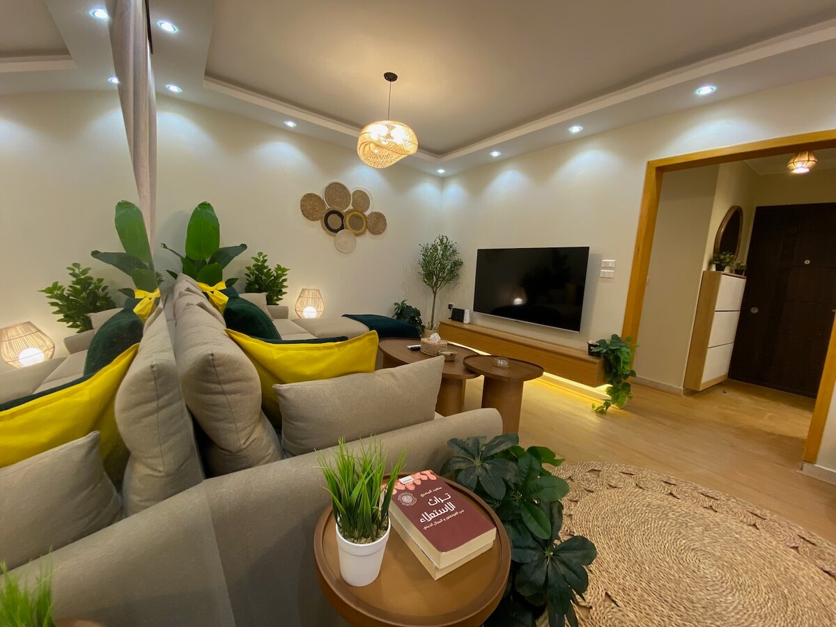 Velkommen til den koselige leiligheten vår med to soverom som ligger i en privat villa i Banafseg 11 – et rolig boligområde rett ved Mohamed Naguib Axis, veien som forbinder 90. gate og Rehab City. Du skal bo på et av de mest prestisjetunge stedene i området: • 10 minutter til AUC • 20 minutter til Kairo internasjonale lufthavn • Fem minutters gange til markedet. • Rett foran Waterway Complex, fullt av restauranter, kaféer, Seoudi Market og et pulserende natteliv.