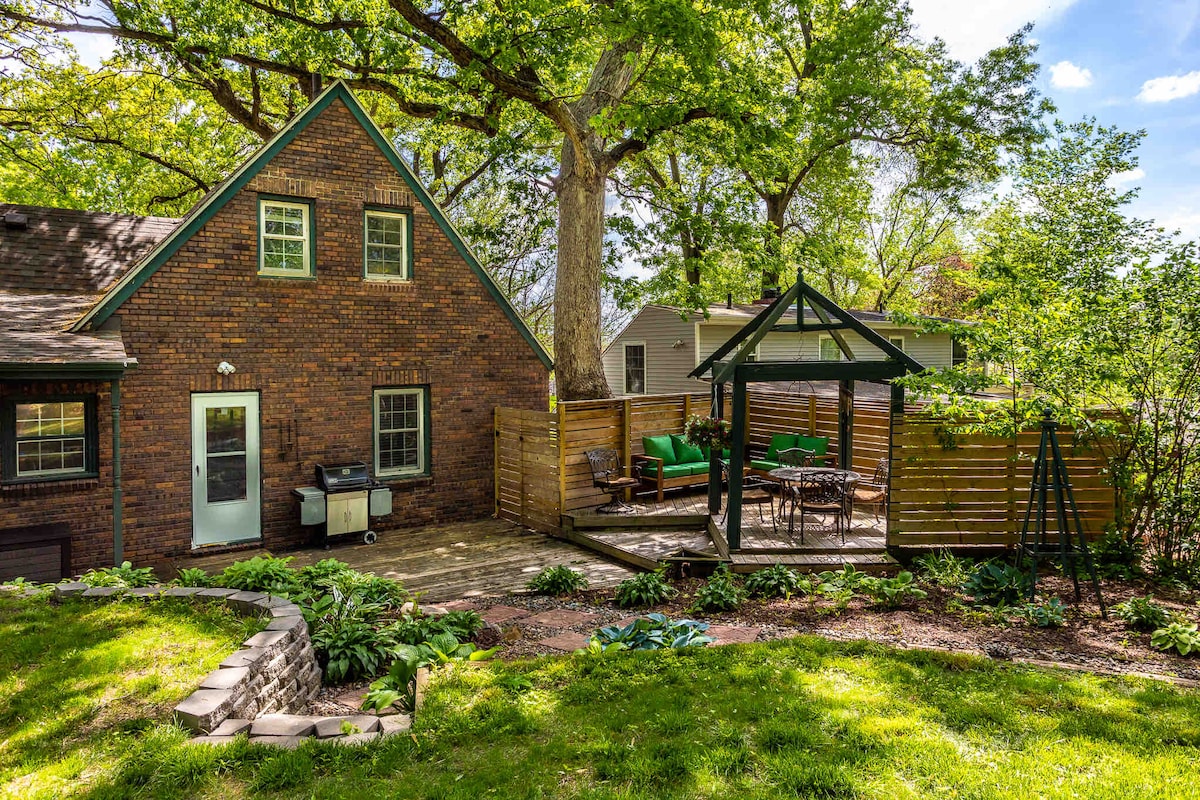 This comfortable bungalow is stylish with historic charm. The front porch is perfect for morning coffee. The main living space has original hardwood floors and classic brick fireplace with craftsman style built-ins. The house also has fenced in backyard with patio for enjoying temperate days. It is centrally and conveniently located close to Des Moines Playhouse, ~6 minutes from Casey’s Center and Downtown Des Moines, ~13 minutes to Jordan Creek Town Center, and ~15 minutes to DSM Airport.