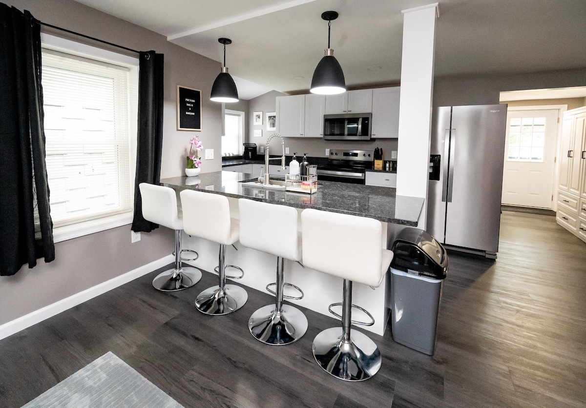 Velkommen til Devils Elbow Cabin, vår nybygde fjellhytte i skogen! Hytta ligger bare 20 miles fra Penn State University, noe som gjør den til det ideelle stedet å bo mens du deltar på arrangementer i University Park. Beliggende mellom Bald Eagle State Park og Black Moshannon State Park, er dette den perfekte ferien for dem som ønsker å unnslippe hverdagens kjas og mas og fordype seg i den naturlige skjønnheten i naturen. Ved (til bålet) er inkludert.