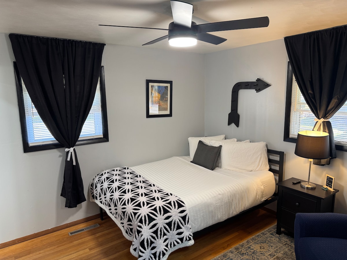 Solrik hytte med to soverom, stor bakgård og uteplass. Kun 12 minutter fra Ross Aide Stadium! Gangavstand fra restauranter og barer. Perfekt for familier som besøker området eller fotball-/basketballfans. Som vert som bor i lokalsamfunnet, er jeg forpliktet til å bruke miljøvennlige rengjøringsprodukter som ikke har tilsatt PFA. Jeg opprettholder en naturlig plen og hage uten å bruke harde plantevernmidler/ugresmidler, noe som innebærer at gresset ikke alltid er ugressfritt, men er trygt for kjæledyr og barn.