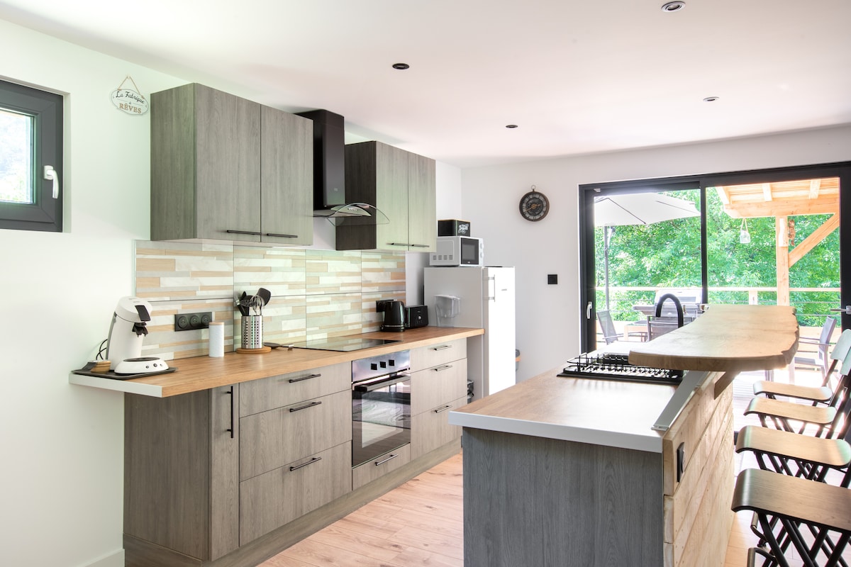 Gammelt hus fullstendig renovert og oppusset. Denne fredelige boligen tilbyr et avslappende opphold for hele familien. Nytt utstyrt kjøkken (oppvaskmaskin, filterkaffemaskin og Nespresso, mikrobølgeovn, kjøleskap med fryser, vannkoker, brødrister), sittegruppe i andre etasje med tilkoblet TV, gratis wifi (fiber), et stort bad, to separate toaletter, en per etasje. 2 soverom: ett med dobbeltseng 160x200 og ett med to senger 90x200. Huset er kjølig om sommeren. Sengetøy og håndklær er inkludert.