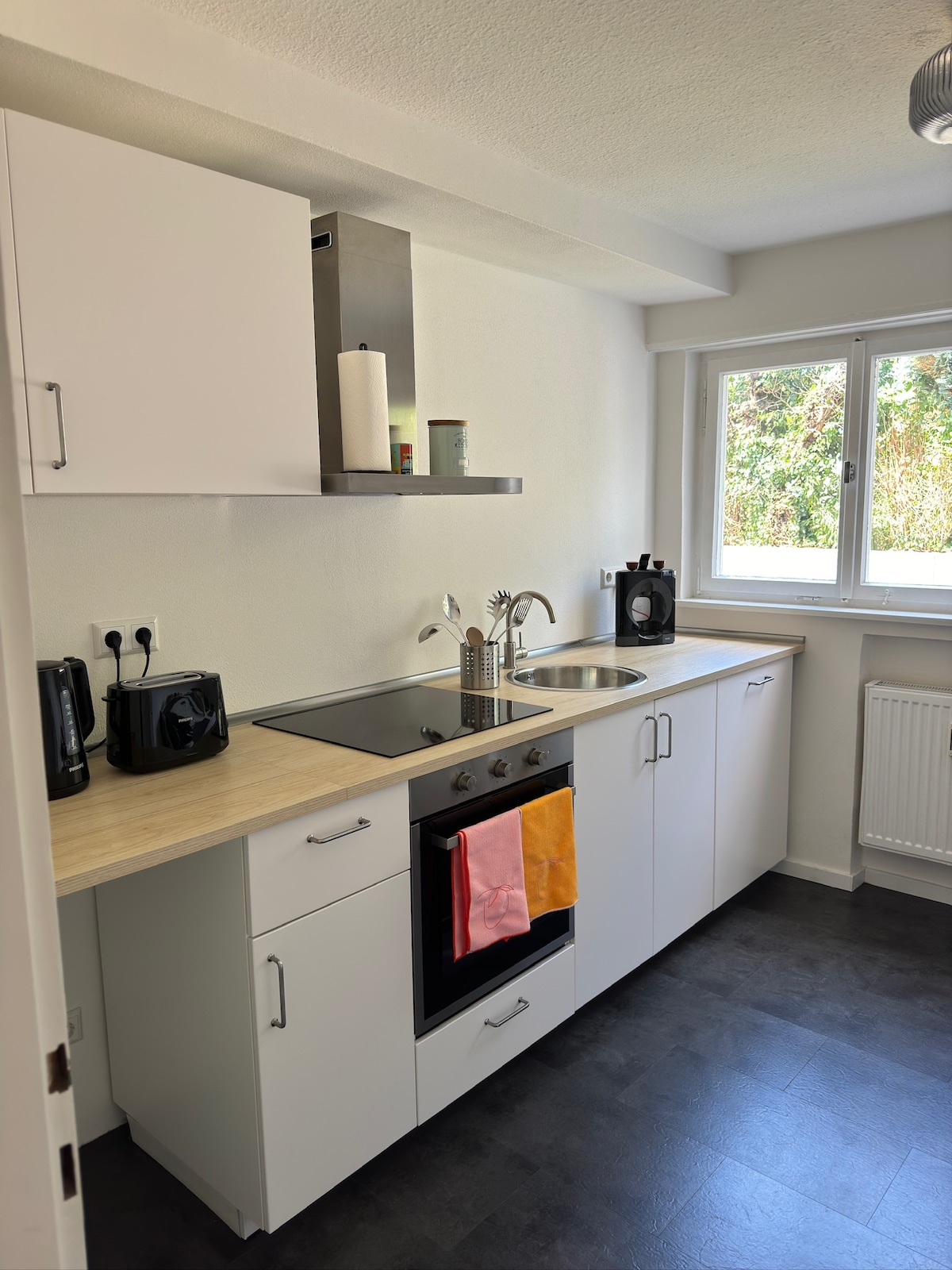 Moderne leilighet for én person med balkong og undergrunnsparkering – ideell for forretningsreisende eller besøkende på messer. Bare fem minutter til S-Bahn Echterdingen (S2/S3), to minutter til flyplassen/messen, 25 minutter direkte til Stuttgart sentrum. Det er gangavstand til bakeri, supermarked og restauranter. Trådløst nettverk med høy hastighet, gulvvarme og fleksibel innsjekking er inkludert.