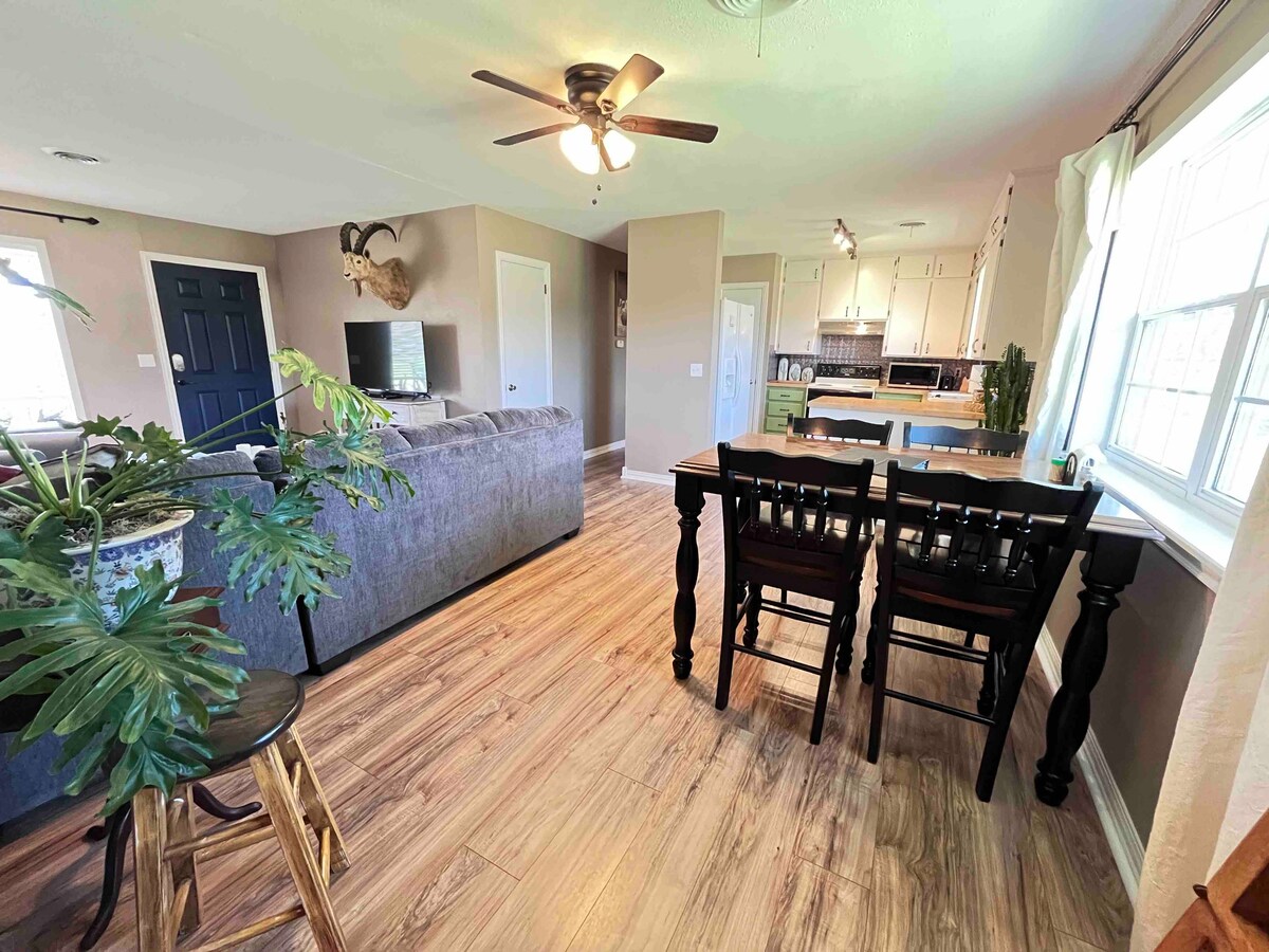Velkommen til Green Door Cottage, hvor du vil nyte en sjarmerende hyttefølelse i hjertet av Childress, Texas. Historien bak denne hytta vil ta deg tilbake til 1940-tallet, da den ble brukt som en del av Fairview Floral Wholesale Co. Den separate innkjørselen og hovedinngangen, som fører helt til bakgården, etterligner et hus i shotgun-stil. Sjarmen og den unike historien gjør oppholdet ditt minneverdig.