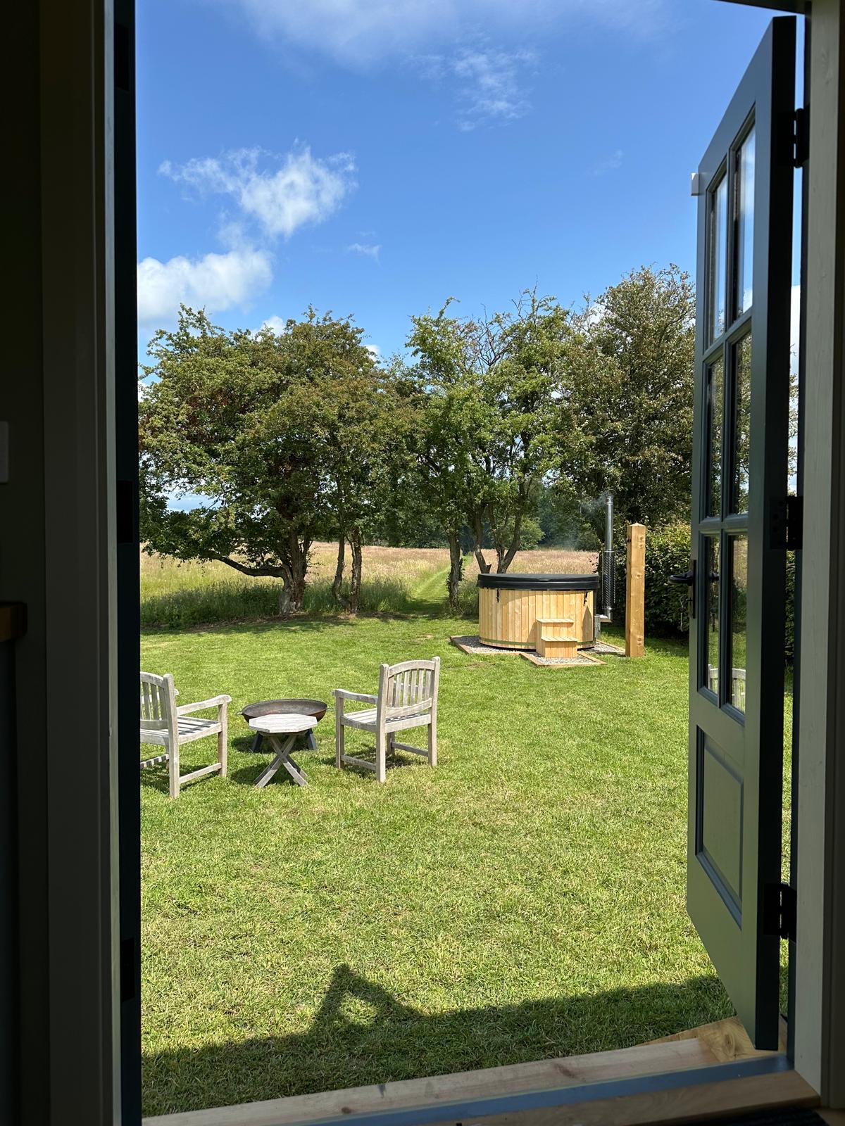 Geodesisk kuppel med vedfyrt boblebad i hjertet av Shropshire-landskapet. Plassert på en 3 hektar stor hage på familiens lille gård. For å komme deg rundt foreslår vi at du har bil eller sykkel, siden det ikke er offentlig transport eller taxier. Vær oppmerksom på at vi er en gård i drift, så du vil se og høre traktorer under oppholdet. Familien vår er også ivrige ryttere, så du vil også se hester. Det er også en glampinghytte på åkeren, så du kan se andre gjester under oppholdet.
