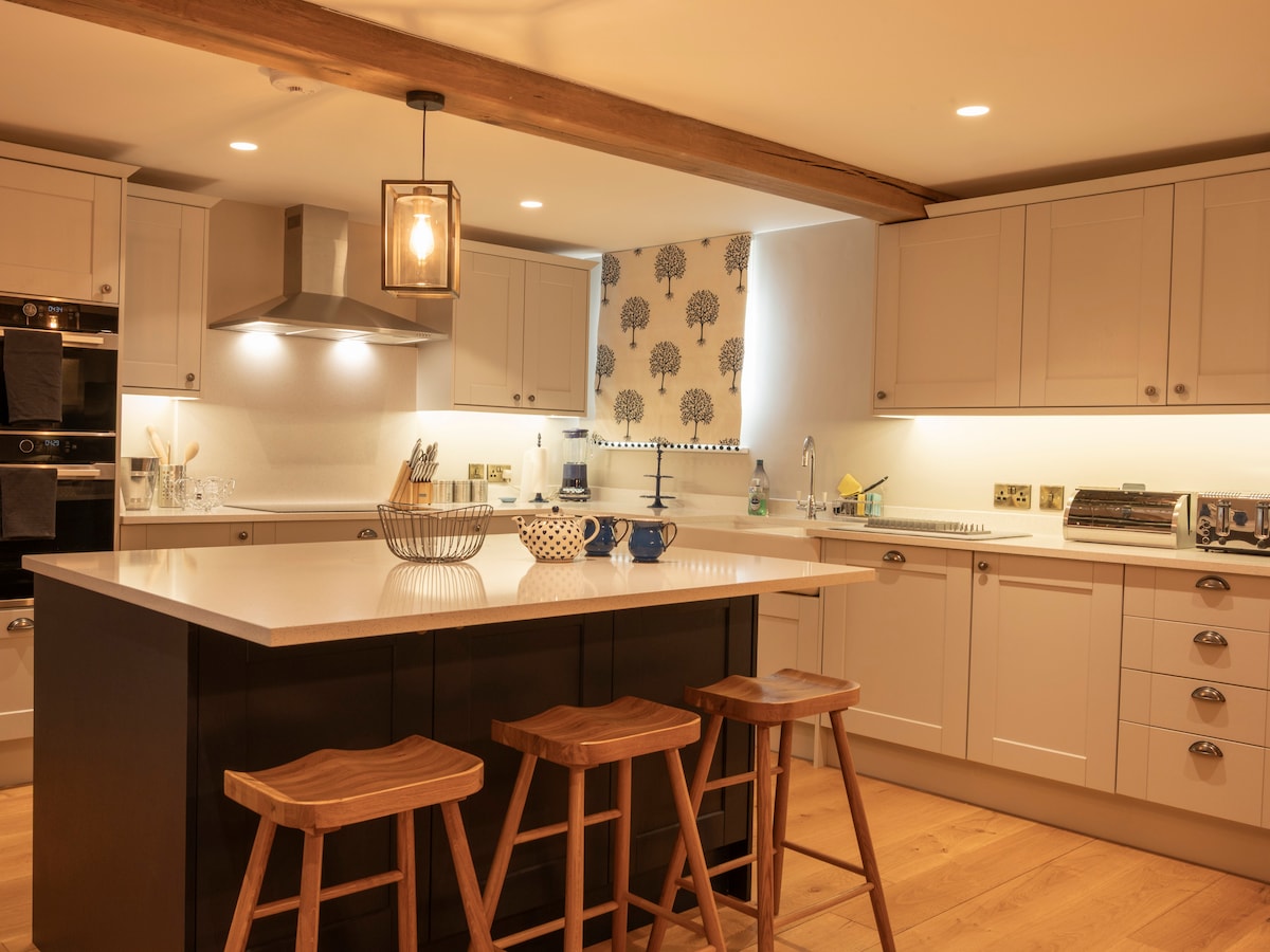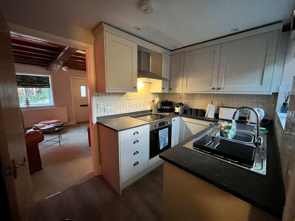Reis tilbake i tid til 1672 med et romantisk opphold på Hawthorn Cottage, et sjarmerende, karakteristisk tilfluktssted med stråtak. Originale lave bjelker, en peis og en vridd trapp blandes med moderne bekvemmeligheter, inkludert gulvvarme, et fullt utstyrt kjøkken og et bad med badekar. Ute kan du nyte utsikten over landskapet, en lukket hage og et eget privat boblebad.