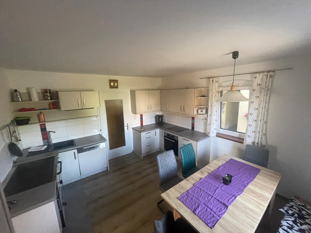 Ha det gøy med hele familien i denne stilige boligen. Ren natur på Dreiseithof helt i tre med hester, kylling, og mye plass til barna dine. Direkte fra eiendommen går det mange turstier på Schellenberg. Simbach am Inn / Braunau med alle butikker ligger 8 minutter unna med bil. Rottaler Bäderdreieck ligger i umiddelbar nærhet, Burghausen, Passau, Salzburg og München kan nås på under en time.