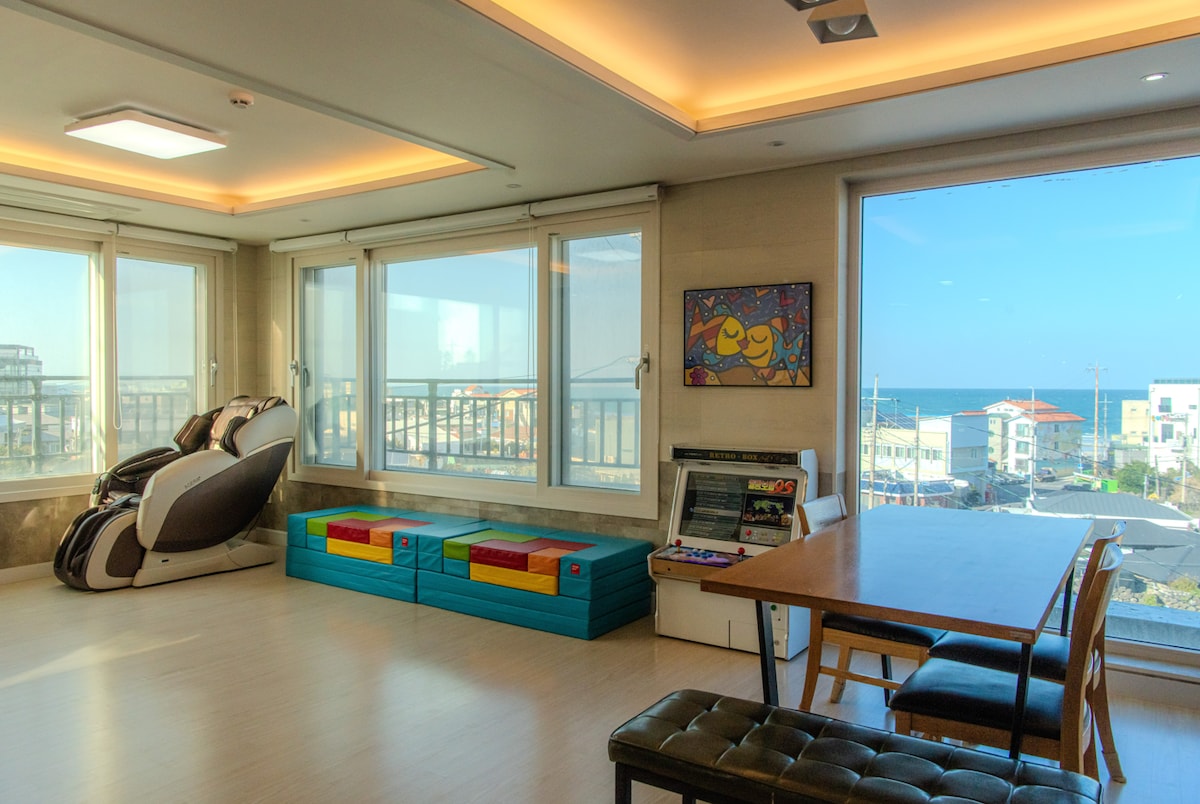 Family-Friendly Kids Pension near Woljeong Beach, Jeju Perfect stay for families traveling with children. ✔ Indoor Kids Playground – Safe and fun space for kids regardless of weather. ✔ Heated Swimming Pool – Enjoy warm water play even in autumn and winter. ✔ Child-Friendly Facilities – high chair, and safety items available. ✔ Walking Distance to Woljeong Beach & Café Street – Easy access to seaside walks and local cafes. A top choice for your Jeju family vacation from September to December.
