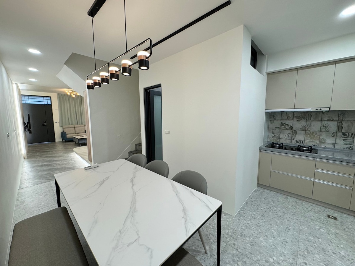 我家以溫潤柚木家具與北歐自然風為主軸,空間明亮通透,結合餐廳、客廳與書房式臥室的生活感設計,既放鬆又富有品味。客廳擁有大面窗景與綠意牆面,午後陽光灑落時特別療癒,搭配質感單椅與閱讀燈,是最適合靜坐喝茶與閱讀的角落。餐桌區以柚木家具與暖色燈光營造出家的溫度,很適合慢慢享用早餐或夜晚小酌。臥室安靜舒適,書桌與窗景相伴,無論短住或長住都自在從容。整體氛圍溫暖、有生活感、不制式,像住進一個有故事的家,特別適合喜歡質感旅宿與靜謐時光的旅人,歡迎你與我共享這個空間。 步行9分鐘到五權車站,經過大慶,烏日,新烏日(台中高鐵站)即到達台中高鐵站非常方便 步行5分鐘有7-Eleven 步行4分鐘到達國家圖書館公園 步行12分鐘及到達國家動漫園區 這個地點非常靠近市中心火車站附近的日式文化區及好吃好玩的地方,步行與騎YouBike也非常的方便! 我家值得你們的選擇🥰!