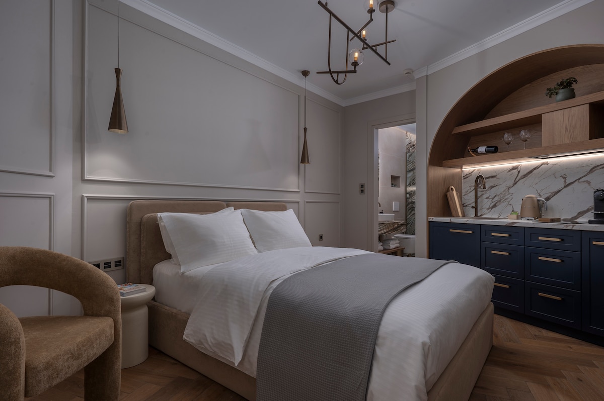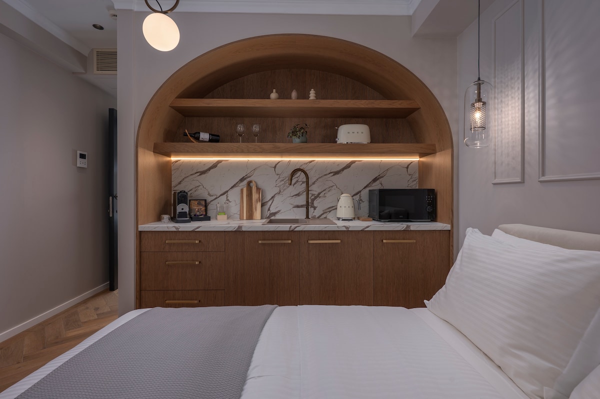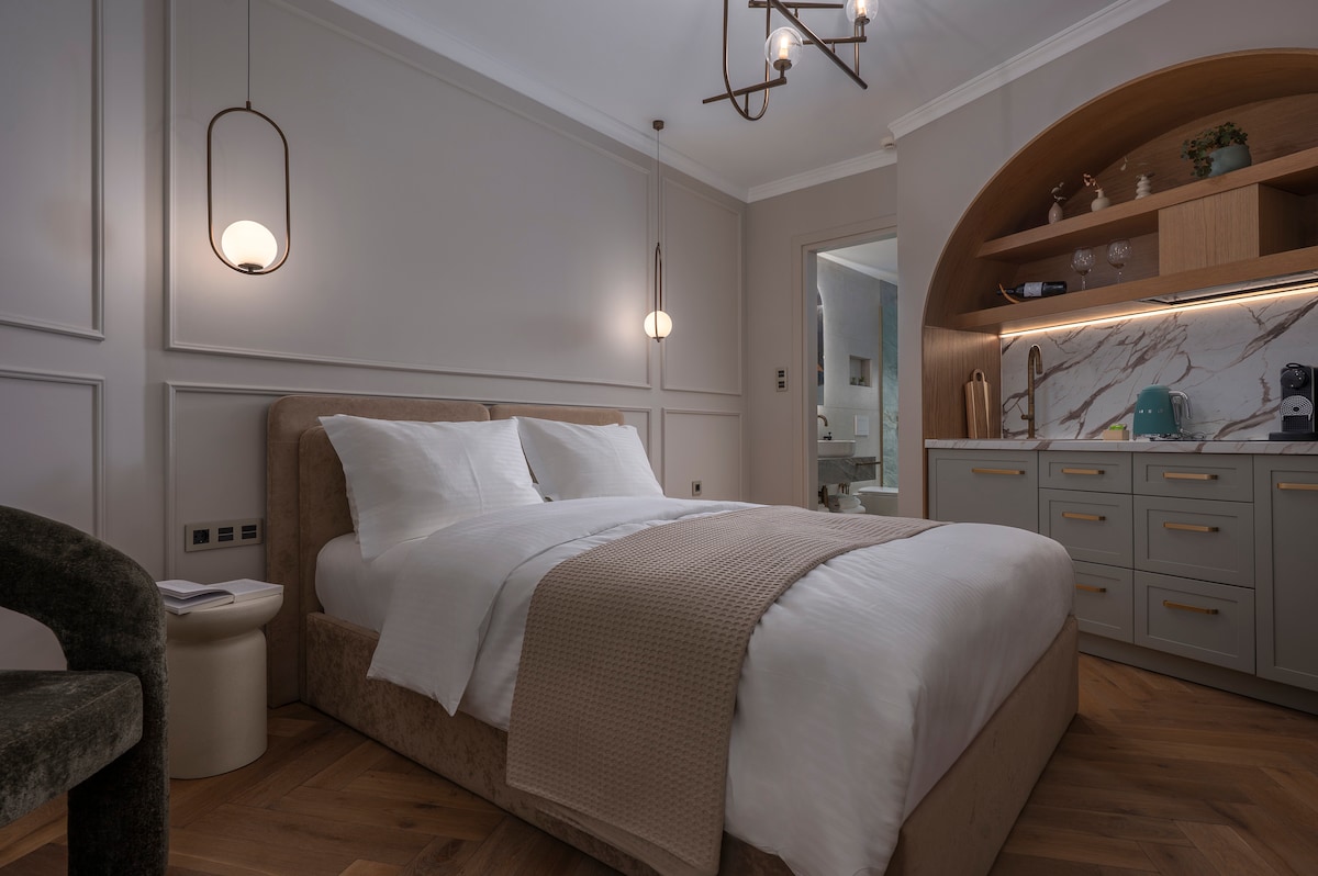 Η Σουίτα HLIOTROPIO είναι ένας χώρος που συνδυάζει την ιστορική κληρονομιά της Φλώρινας με την μοντέρνα πολυτέλεια. Κάθε γωνιά του αντανακλά την έμπνευση των παλιών γλυπτών, ενώ η τοποθεσία δίπλα στο ποτάμι και με θέα το βουνό δημιουργεί ένα καταφύγιο ηρεμίας και έμπνευσης.