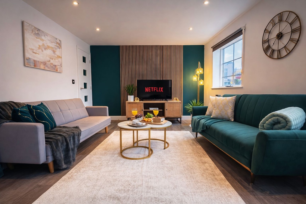 3 soverom + kino | 7 gjester | Nær JLR/NEC/BHX