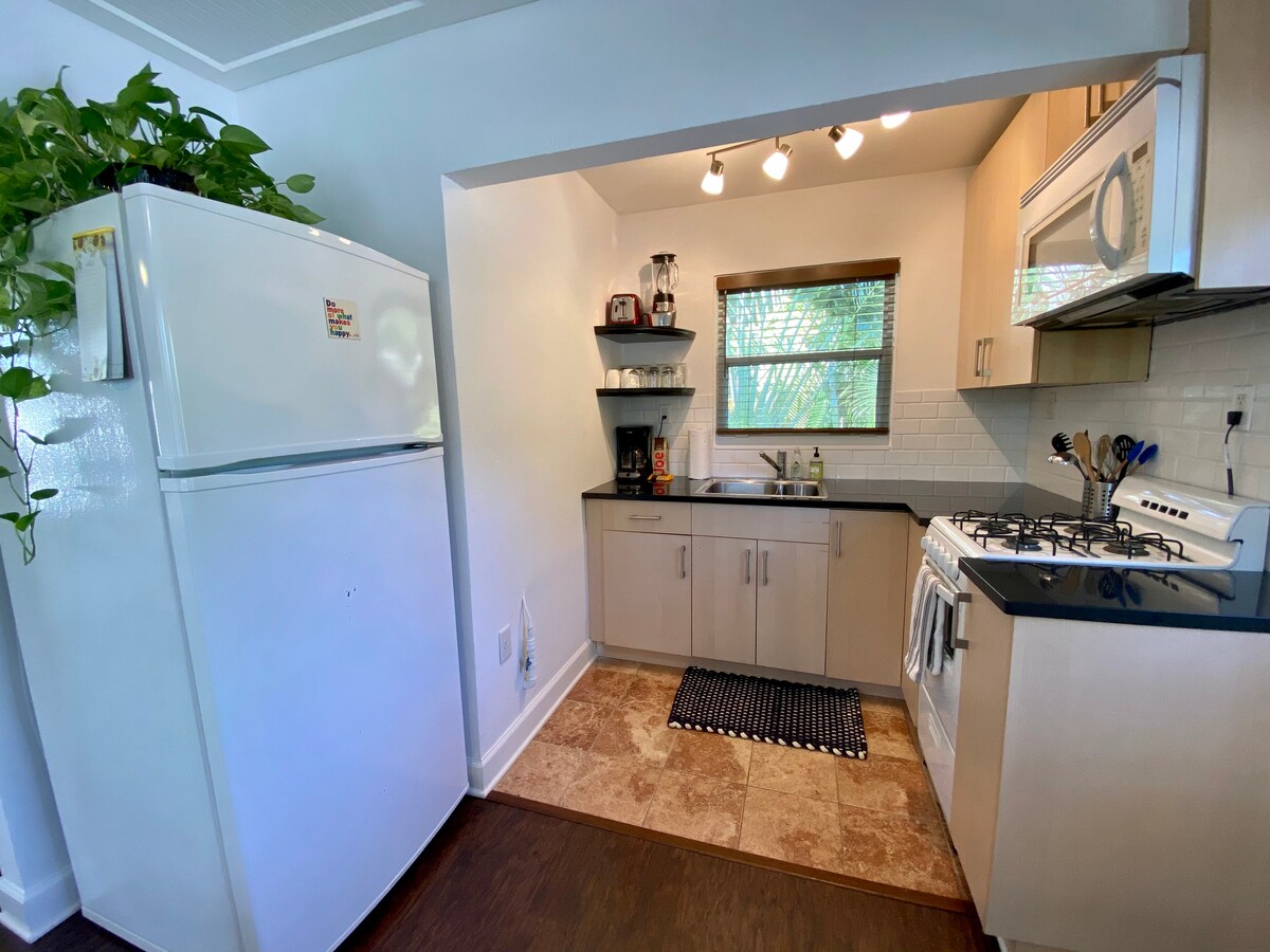 Vakker, oppdatert hytte i hjertet av det historiske distriktet West Palm Beach. Vår ettroms, ettbad studiohytte med fullt utstyrt, oppgradert kjøkken venter på deg i hjertet av det sjarmerende Flamingo Park/Sunshine Park-nabolaget i sentrum av West Palm Beach. Ideell beliggenhet, nær alt West Palm Beach sentrum har å by på. Gå til The Square (tidligere City Place), Kravis Center og Convention Center, sykle til stranden og Palm Beach Island.