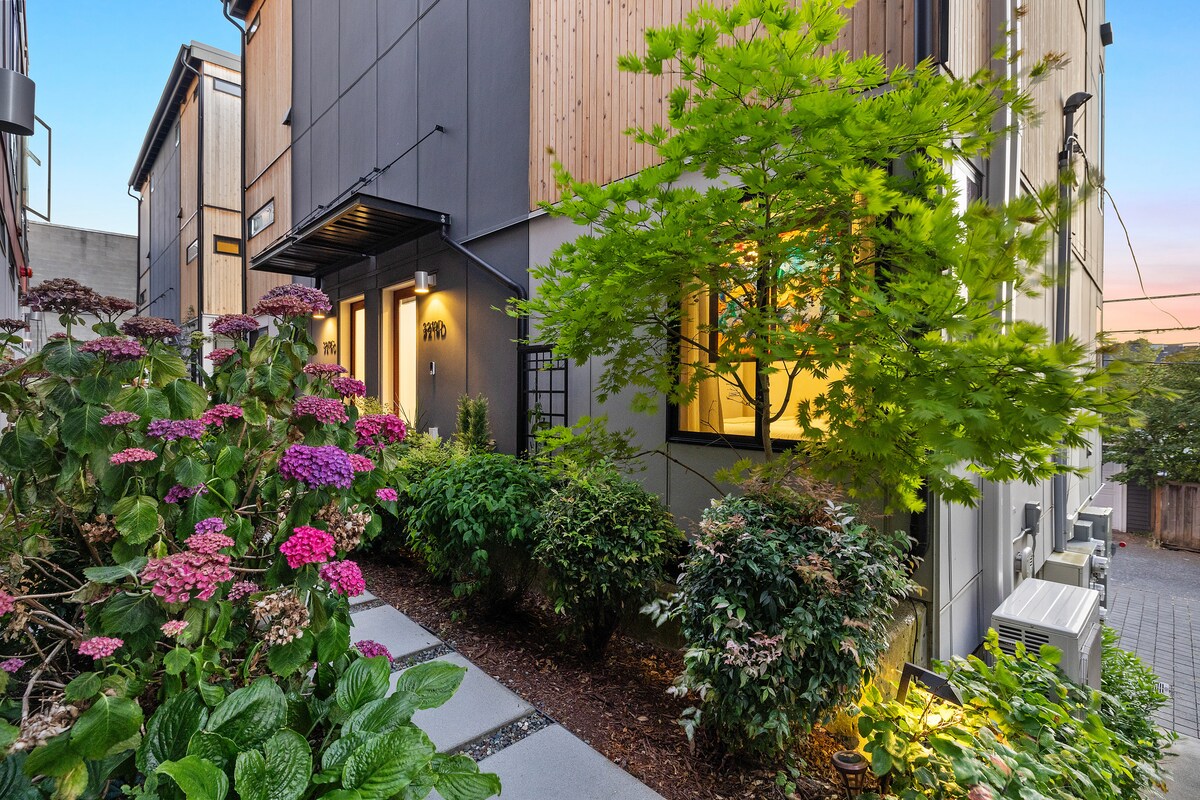 Nybygd 4-etasjes rekkehus helt for deg selv med helt nye fasiliteter og dusj. Separate soverom og bad i øverste og første etasje for ekstra privatliv og ro. Bare noen minutter fra vannet! Arbeidsplass med høyhastighets trådløst nettverk som er egnet for bærbare datamaskiner. 18 minutter til flyplassen, 15 minutter til Pike Market, sykkelsti og bussruter i nærheten. Gangavstand til kafé og bakerier. Øyeblikkelig bestilling er tilgjengelig for gjester med fire eller flere stjerner!