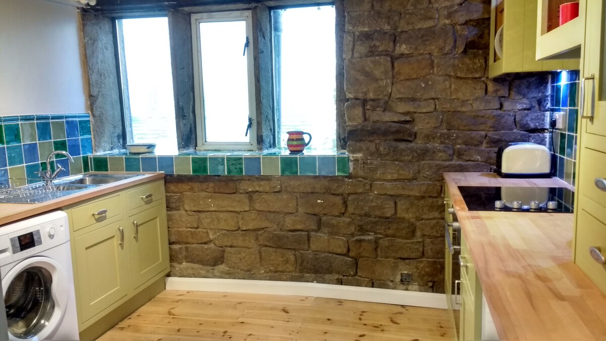 Hytta ligger i en fantastisk omgivelse på en sørvendt åsside med panoramautsikt over milevis av fin Yorkshire-landskap. Den ligger omtrent to miles fra sentrum av livlige Hebden Bridge, hvor det er et utmerket utvalg av uavhengige butikker, restauranter, kaffebarer, art deco-kino, teater og markeder. Hytta er nylig renovert og beholder mange originale funksjoner, men med alle moderne bekvemmeligheter, inkludert et fullt utstyrt kjøkken, gulvvarme og en vedovn.