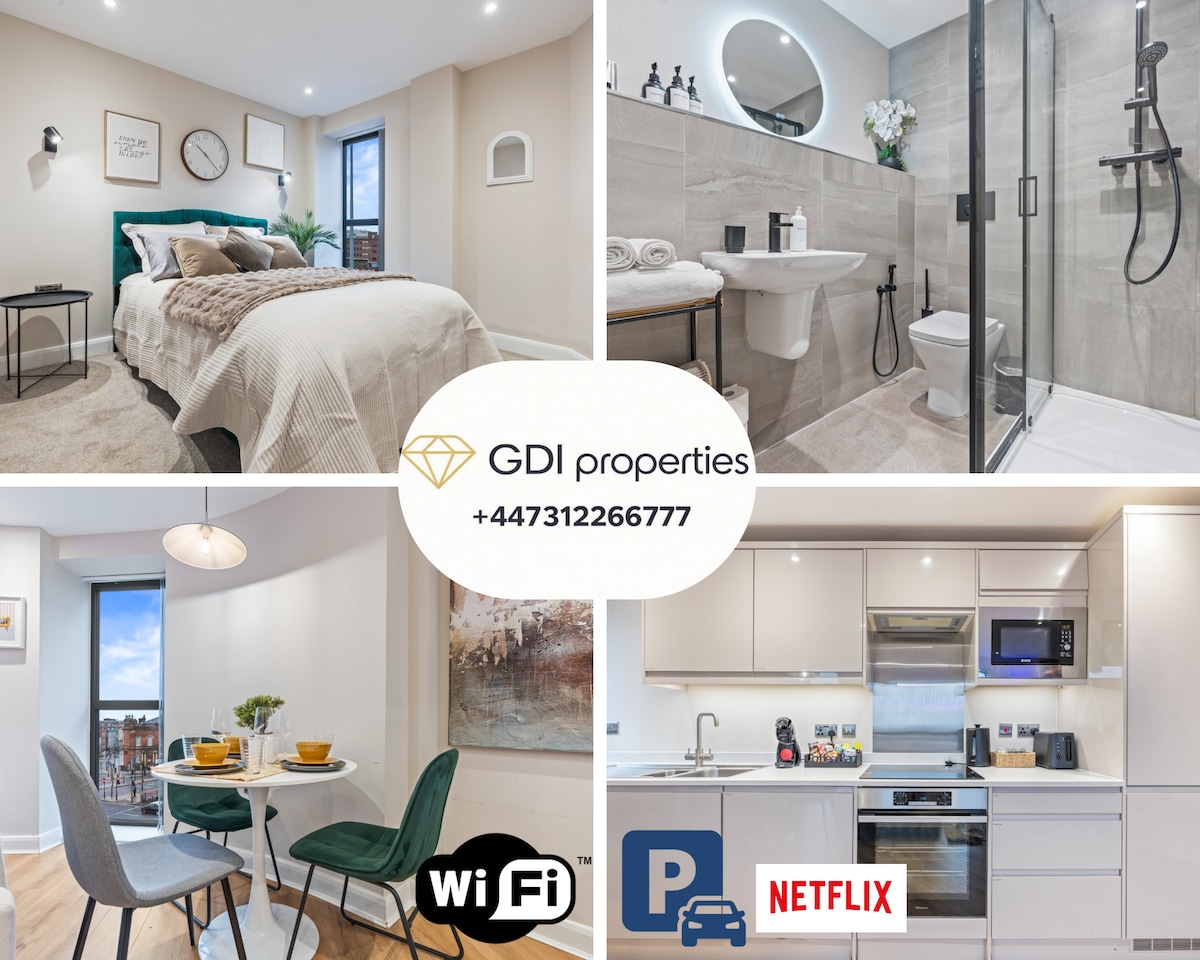 Oppdag det elegante feriestedet ditt i hjertet av Leeds! Denne splitter nye toppleiligheten med to soverom har god plass til fire gjester. Den har et sofistikert, moderne design, et fullt utstyrt Porcelanosa-kjøkken, en privat takterrasse og et dedikert arbeidsområde. Perfekt for både fritids- og forretningsreisende som søker luksus og bekvemmelighet i en førsteklasses beliggenhet i byen.