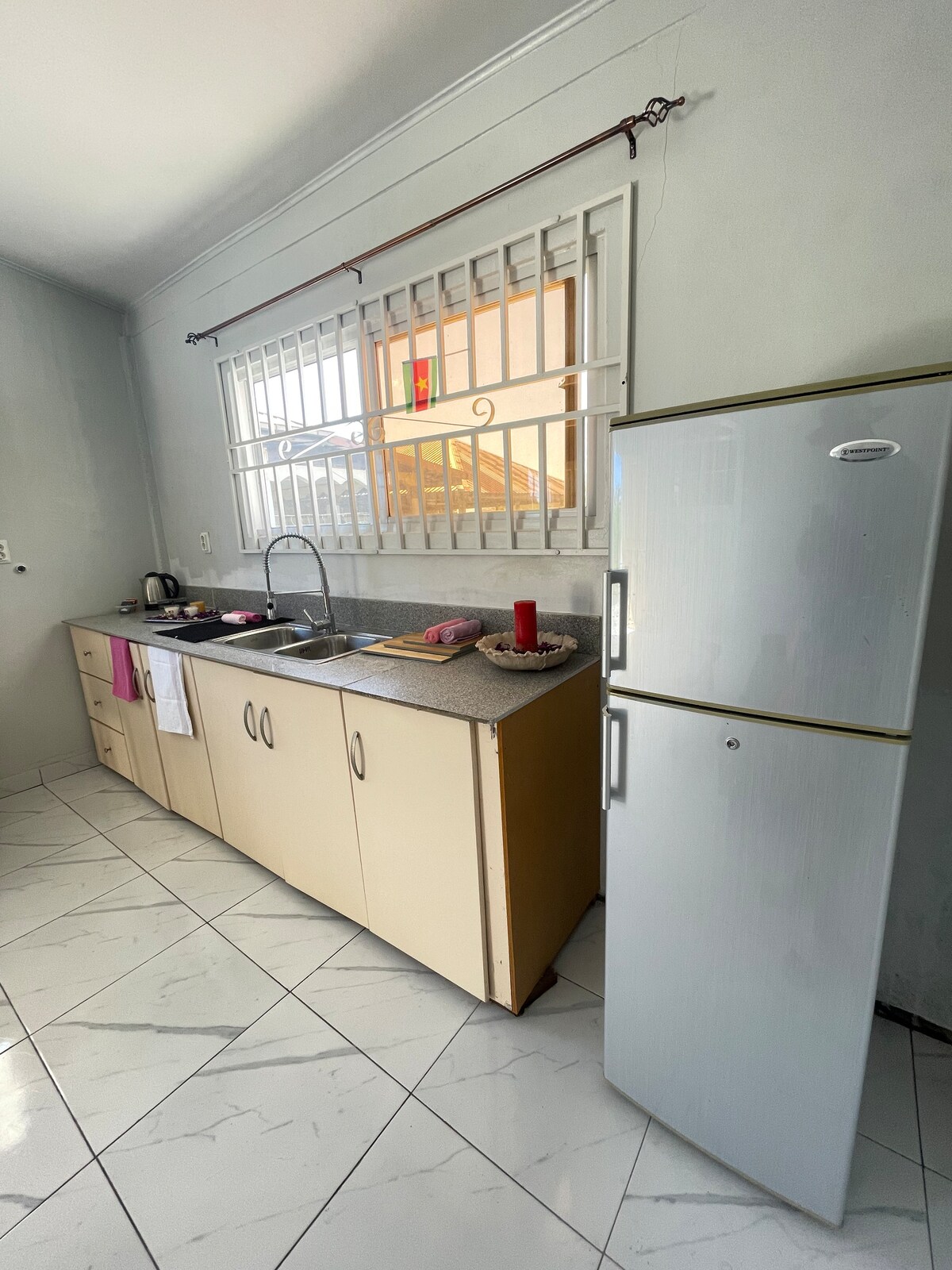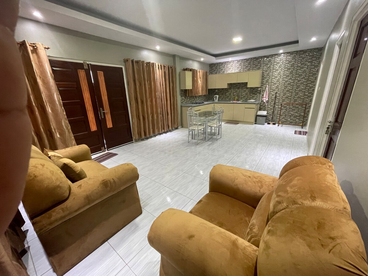 Slapp av med hele familien på dette fredelige stedet å bo. Ser du etter et førsteklasses opphold i New Nickerie? Dette vakre hjemmet har alt du trenger for et komfortabelt og luksuriøst opphold. Nyt fullt klimaanlegg, gratis trådløst nettverk og et fullt utstyrt kjøkken med alt nødvendig bestikk. Fasiliteter: • Klimaanlegg • Gratis Wi-Fi • fullt utstyrt kjøkken • avslappende område i nærheten av sentrum.