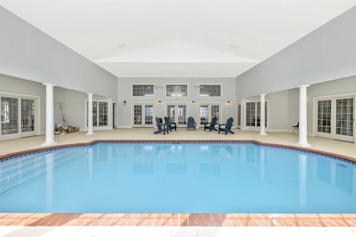 4BR, 4BA, fantastisk innendørs basseng, elbillader, ~10 acr