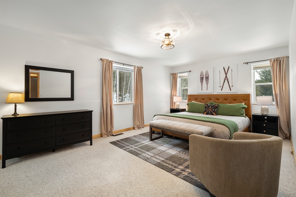 Velkommen til The Nest – den perfekte baseleiren for alle Whitefish-eventyrene dine. Denne hytta ble bygget i 2020 i The Quarry. Beliggenheten er uslåelig. Midt mellom kjære Downtown Whitefish og Whitefish Mountain Resort med rask tilgang til stier. Basseng, boblebad, treningsrom og klubbhus på stedet. To minutters gange til Crema Specialty Coffee, Tap House micro-brews and grill og Alpine Deli and Market. Hovedsoverommet har en kingsize-seng, sovehemsen har en queensize-seng og køyesenger.