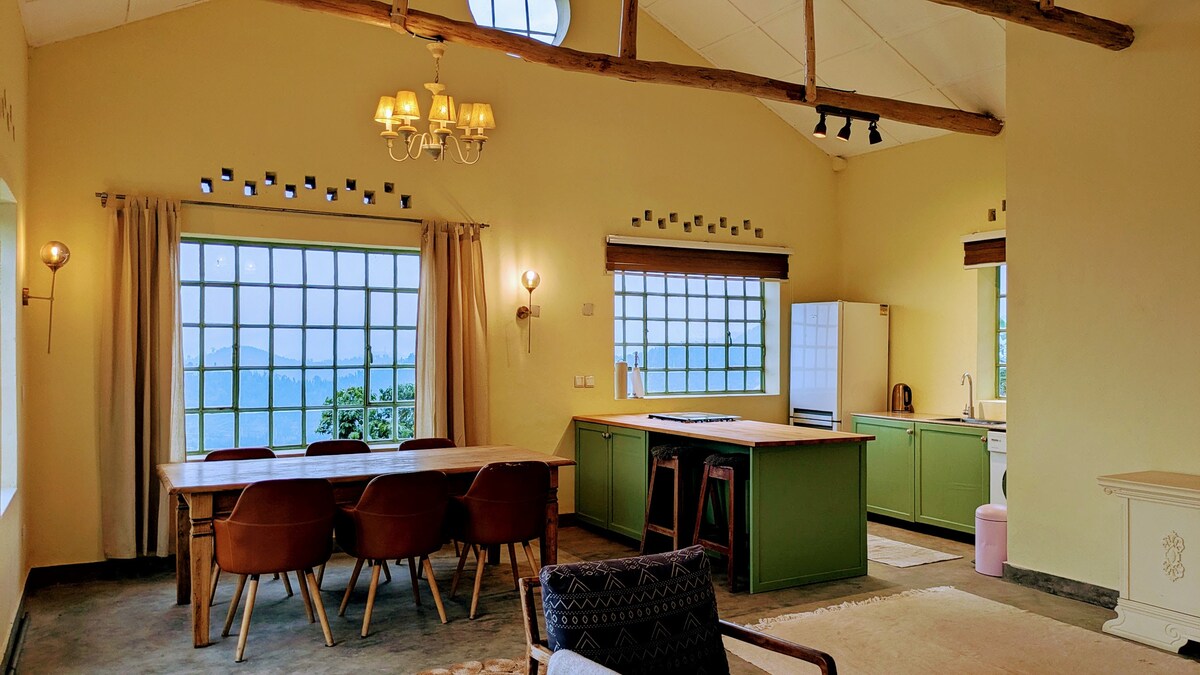 Denne nydelige hytta med to soverom ligger på en liten kaffeplantasje på en åsside med vakker utsikt over Kivusjøen. Kom og slapp av sammen med venner eller hele familien på dette fredelige bostedet. Huset er fullt utstyrt med et godt fungerende kjøkken, en åpen stue, en stor veranda og en hage, to soverom og to bad.