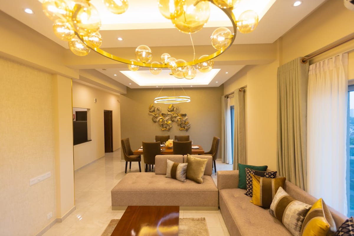 Vi tilbyr smart stue som sømløst blander moderne teknologi med moderne livsstil. Stedet Denne splitter nye, moderne leiligheten har to soverom med en kingsize- og en queensize-seng, en koselig stue, spisestue, to bad og et fullt utstyrt kjøkken. Den er ideell for jobbreisende, familier eller grupper som søker et hjem bortefra. Få tilgang til fasiliteter som klimaanlegg, smart-TV og vaskemaskin. Gjestetilgang
