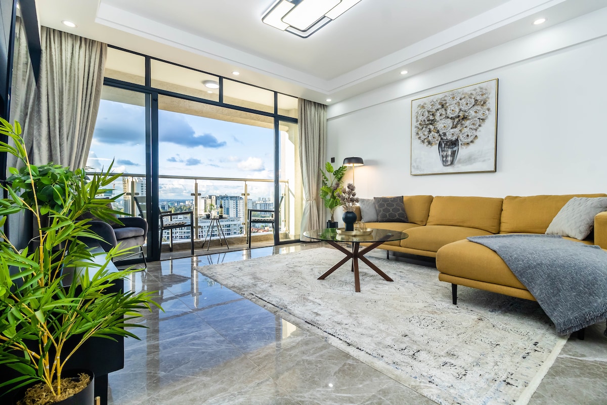 Unn deg en verden av eleganse og ro i denne moderne perlen i hjertet av Kileleshwa. Dette sofistikerte tilfluktsstedet er designet med upåklagelig smak, og kombinerer moderne stil med komfort, og tilbyr et virkelig eksepsjonelt opphold. Våkn opp til fantastisk utsikt over byen og skyline fra vinduene som går fra gulv til tak, hvor naturlig lys lyser opp det elegante interiøret. Hver detalj i dette rommet er nøye utvalgt, fra den stilige innredningen til de plysjaktige møblene som skaper en innbydende aura.