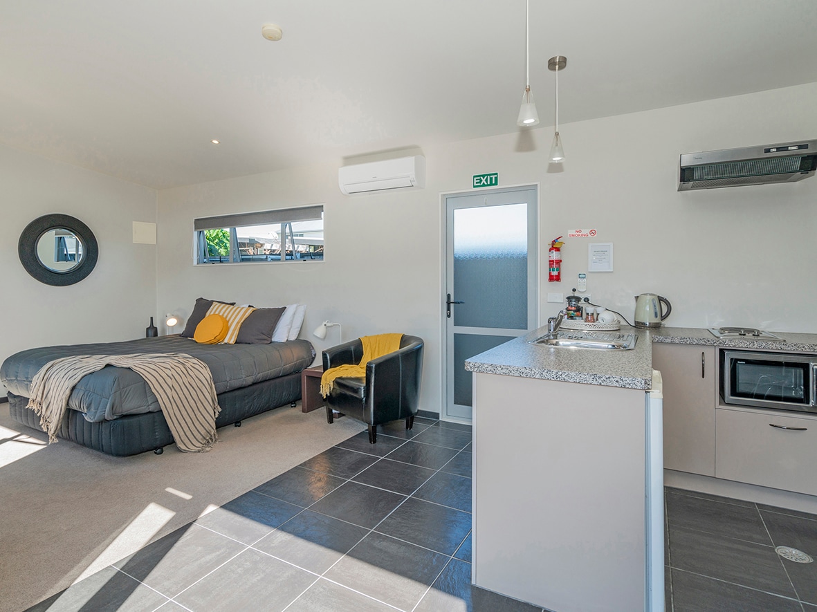 En bevisst annerledes, John Henderson-designet, litt sær B & B i Bethlehem, Tauranga – som også ligger ved siden av, og drives av eierne av Somerset Cottage, en restaurant og kokkeskole som har eksistert lenge. Du er alltid velkommen til å bli med oss på restauranten en av kveldene vi er åpne – onsdag til lørdag (bestilling er vanligvis nødvendig), eller vi kan ta med et restaurantmåltid til deg i studioet hvis du foretrekker å spise privat. Du kommer til å elske dette unike og romantiske stedet.