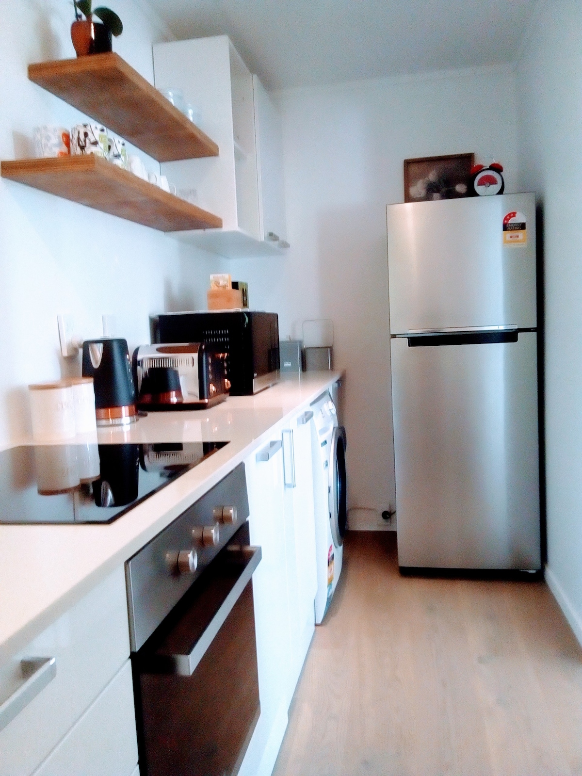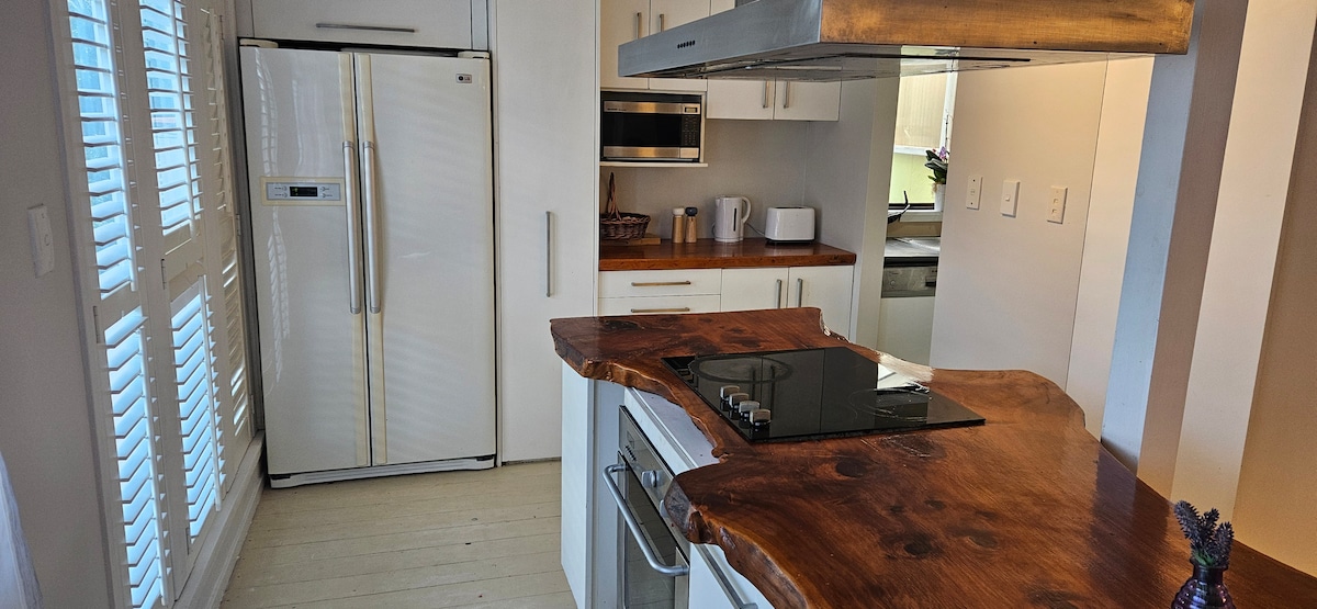 Solfylt selvstendig hageenhet i kystområdet i Stanmore Bay. Fullt utstyrt moderne kjøkken med 2 tallerken keramisk platetopp, liten stekeovn, kjøleskap,oppvaskmaskin, vannkoker, brødrister, blender. Priv.bathroom med dusj og vaskemaskin. Elektrisk teppe. Enkel innendørs utendør med tilgang til hagen fra egen stue og skyvedører på soverommet. Enheten har egen inngang med parkeringsplass utenfor gaten. Nøkler i nøkkelboks. Bussen stopper rett utenfor huset. 10 min gange fra stranden og lokalt svømmebasseng.