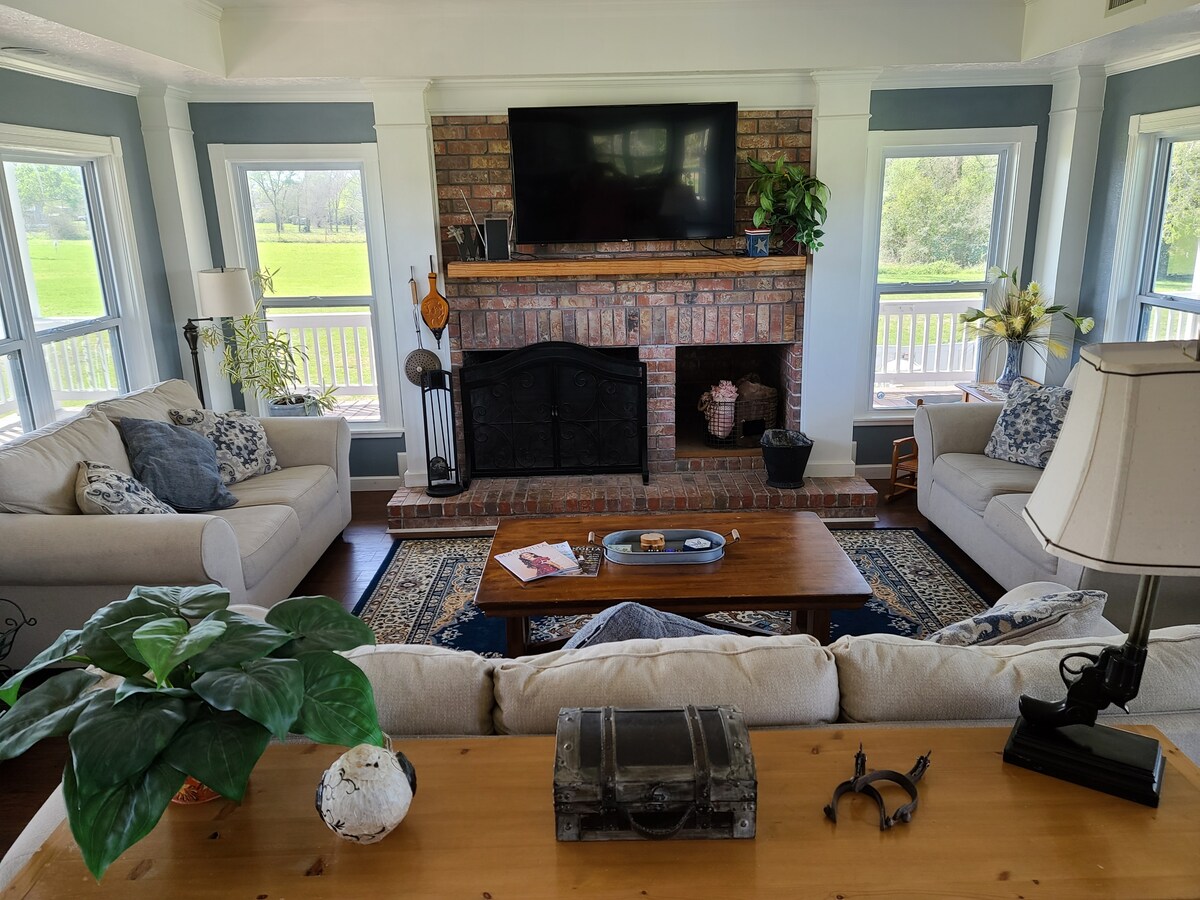 Glem bekymringene dine på dette romslige og fredelige stedet. Vår moderne gård ligger på 12 skogkledde hektar og er et tilfluktssted fra det travle bylivet. Nyt en kopp kaffe eller en cocktail på verandaen og opplev dyrelivet i området. Tilbring dagen på Splashway, speid etter fugler på Attwater Prairie Chicken Refuge, jakt på ender med en lokal guide, delta på en skytekonkurranse på The Ranch Texas, nyt butikkene og restaurantene i Eagle Lake, Wharton og Columbus.