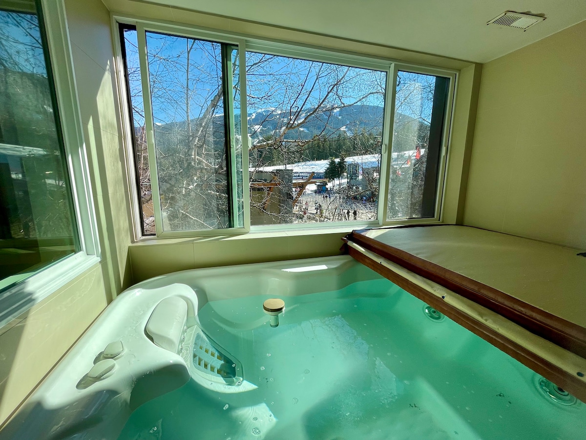 Dette unike rekkehuset i første etasje ligger noen skritt fra Whistler Village, og det er alt du trenger for å slappe av. Privat boblebad utelukkende til eget bruk. To minutters gange til markedsplassen og syv minutters gange til gondolene. Denne hjørneenheten har en privat inngang, fullt utstyrt kjøkken, vaskerom, trådløst nettverk med høy hastighet og smart-TV-er. Parker kjøretøyene dine gratis i den sikrede undergrunnen og glem dem. Ta også en titt på den nye naboboligen med to soverom og to bad: airbnb.com/h/alpinehideaway2