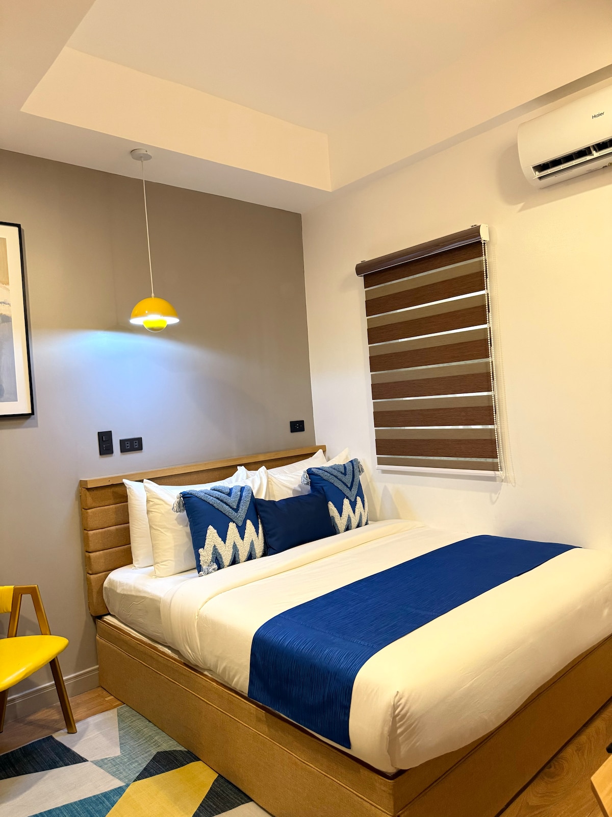Denne private studioleiligheten ligger rett ved stranden. Eiendommen er smakfullt utstyrt med møbler av løvtre, noe som er perfekt for en avslappende sommerferie. Det er utstyrt med konvensjonelle bekvemmeligheter, for eksempel et klimaanlegg, varme og kalde dusjer, en flatskjerm-TV og fiber Internett-tilkobling. Denne enheten har en balkong som gir utmerket utsikt over Bulabog-stranden. Gå rett ut på den vakre stranden Bulabog eller gå 7 til 10 minutter for å komme til White Beach.