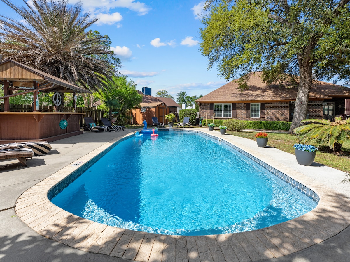 Hjemmet vårt er en bungalow med tre soverom og to bad, flott for familier eller vennegjenger. Dette stedet ble gjennomført utstyrt med fasiliteter og designet for å gjøre dette til ditt hjem hjemmefra. Et fullt kjøkken, romslig underholdningsområde, koselige soverom og en stor bakgård med et nyinstallert oppvarmet basseng gjør dette til et komfortabelt og avslappende sted etter en dag med reising og moro i Savannah.
