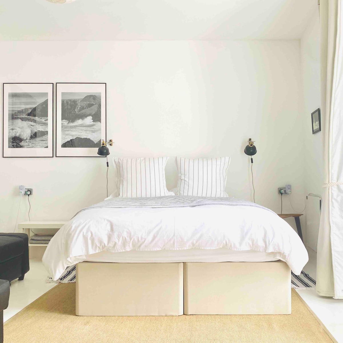 Når bølgene bryter mot den gylne sanden, bærer lyden av havet opp til Dan Y Graig, og med fantastisk utsikt over terrenget blir et opphold her magisk. Vi håper å lansere låveombyggingen vår innen 2019, så følg med på spennende utviklingen. Dan y Graig-huset er et viktoriansk gårdshus, så vi har forsøkt å beholde så mye av sjarmen og karakteren som de opprinnelige funksjonene gir, samtidig som vi introduserer moderne elementer for å oppdatere appellen og gjøre den mer egnet for dagens reisende, enten det er en turgåer, surfer, en gruppe venner eller en familie som ønsker å tilbringe noen dager i kystnær luksus. Den smale veien som snor seg opp til gården er litt steinete noen steder. Du klatrer opp fjellet, ikke glem det, men det er verdt det! Utsikten fra Dan y Graig er fantastisk, med utsikt direkte mot St. Davids over golfbanen i byen og deretter ned til Whitesands-stranden, bare 300 meter unna, og selvfølgelig ut mot sjøen, Ramsey Island og Smalls Lighthouse! Sammen med den praktfulle bakgrunnen til Carn Llidi-fjellet og den utrolige kyststien som gir en uslåelig setting. Den romslige gårdsbygningen har plass til opptil åtte gjester i de fire stilige soverommene – to rom med kingsize-seng, ett dobbeltrom og ett med to enkeltsenger. Hvert soverom har luksuriøst sengetøy i gåsefjær og andedun, sengetøy i egyptisk bomull og Laura Ashley-håndklær. Soverommet nær sjøen vil bli gjort opp med syntetiske puter og dyne i tilfelle noen har allergi mot naturlige fyll. Styling i rent og lyst hvitt med varme gråtoner og fargeglimt fra de fantastiske tilbehørene laget lokalt – Tregwynt Woollen Mill-tepper og -puter, Solva Woollen Mill-tepper. Monokrom veggkunst av Solva-kunstneren Ian McDonald og fargerike kystlandskap av den berømte Pauline Beynon beriker rommene. Mens soverommene på forsiden er store og lyse, med overdådige store senger, er de to på baksiden av huset rom i «loftsstil» som fører ut til sin egen lille private trapp. Disse tilbyr en annen opplevelse, perfekt for barna eller gjesten som foretrekker et koseligere sted. For å maksimere plassen har vi brukt spesialdesignede loftssenger som er litt lavere enn vanlig, slik at du ikke slår hodet i bjelketaket når du står opp om morgenen. Badet i første etasje har et badekar med unik utsikt. Slapp av i bobler og se rett ut på St. Brides-bukten og kystterreng. Det er også en fantastisk glassdusj, og vinduet har en dobbel persienne med en magisk skjerm for hvilken grad av privatliv en gjest måtte kreve. Kryss husets nivåer via den gamle trappen, ferdigstilt med en Solva Woollen-mølle for å forbedre dette magiske rommet! En «sjøfartsinspirert» stil kommer sammen med hint av Alice i Eventyrland for å fremkalle ideer om en annen verden. En moderne lysekrone av gule Edison-lyspærer som henger som tårer fra himmelen, inspirerer fantasien. Første etasje har god plass til å slappe av og underholde. Sitt og les i den koselige, men mer formelle «Parlour» – len deg tilbake i stolene med vingede ryggstøtter, len deg tilbake på tweed-chesterfielden og nyt utsikten. Tenn vedovnen når det er storm utenfor, og nyt komforten av å være trygg inne, hvor du kan planlegge neste eventyr ved hjelp av «Twr Y Felin»-guiden til St. Davids-kartet som henger over peisen. Dette kartet er et vell av kunnskap og ble laget av min oldefar i 1923, og han eide faktisk gårdshuset en gang. Selv om det ble trykt på nytt på 80-tallet, er kartet nå vanskelig å finne. Samles med familie eller venner på andre siden av gangen i den mer avslappede familiestuen som åpner seg inn i spisestuen på kjøkkenet. Den har en lys og moderne følelse, med to nydelige komfortable tweedsofaer. Familierommet er ideelt for regnfulle dager, og har en stor smart-TV for å se på film eller nok plass til brettspill og annen familieunderholdning. En annen liten vedovn er praktisk for å fylle på varmen som gulvvarmen gir i rikelig grad. Det er en annen spektakulær utsikt over det robuste landskapet gjennom vinduet, og du kan også se barna leke på terrassen foran. Vi åpnet dette rommet opp til kjøkkenet/spisestuen for å forbedre kvaliteten på stedet, noe som gir en mye friere flyt og åpenhet til oppsettet. Hvis du er opptatt på kjøkkenet, spiser middag eller slapper av i familierommet, kan du fortsatt sosial. Nyt å spise sammen rundt et tungt, rustiktig bord. Det er plass til åtte å sitte komfortabelt rundt bordet, og det er et ekstra blad gjemt under det hvis du vil forlenge bordet hvis venner kommer på besøk. Husets kokk kan lage mat ved hjelp av Le Creuset-utstyret på toppen av Rangemaster Range-kokeapparatet – en kokeplate med fem gassbrennere, med stekeplate og tre elektriske ovner, som bør holde kokken opptatt og gi rikelig med mat til alle! Villeroy & Boch «Manoir» porselensservise og Dartington-bestikk forbedrer matopplevelsen innendørs, og det er et sett med bambusservise hvis været er fantastisk og du bestemmer deg for å spise ute. Hvem har lyst til å ta oppvasken når du er på ferie? Ingen trenger å gjøre det, siden det er en oppvaskmaskin i familiestørrelse for å gjøre ting enklere. Det er også et Siemens-kjøleskap med seks hyller og tre fryseskuffer hvis du vil fylle opp og unngå daglig shopping, noe som om sommeren kan være et mareritt. Mange gjester foretrekker å bestille på nettet og få alt levert til gårdshuset. Gjemt bak kjøkkenet, rett utenfor bakgangen, er et unikt lite bad. Det unike kommer fra den sære dusjen som er designet inn i den gamle skorsteinen. Det er et fantastisk sted og ganske unikt med en nesten grotteaktig kvalitet. Alle bør prøve det minst én gang i løpet av oppholdet! Ved bakdøren er det et skorom med en stor Belfast-vask hvor du kan vaske støvlene etter en dags gåing, skylle flip-flopsene når du kommer hjem fra stranden. Kast klesvasken rett inn i vaskemaskinen her også. Men før du går inn i huset, hvis du har vært på stranden