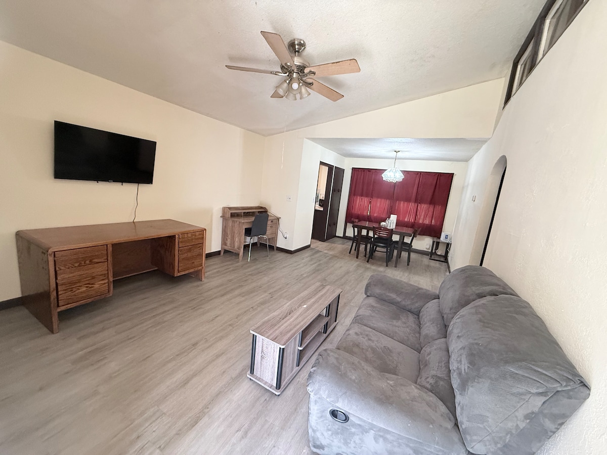 Velkommen til det koselige og praktiske oppholdet ditt i Wichita! Denne romslige studioleiligheten ligger bare ti minutters gange fra Wichita State University og ti minutters kjøring fra sentrum, noe som gjør den perfekt for studenter, besøkende familier eller jobbreisende. Nyt komforten av et fullt utstyrt sted designet for 1–2 gjester, komplett med alle nødvendigheter for et avslappende kort- eller langvarig opphold. En egen parkeringsplass gjør det ekstra praktisk, spesielt for de som utforsker byen med bil.