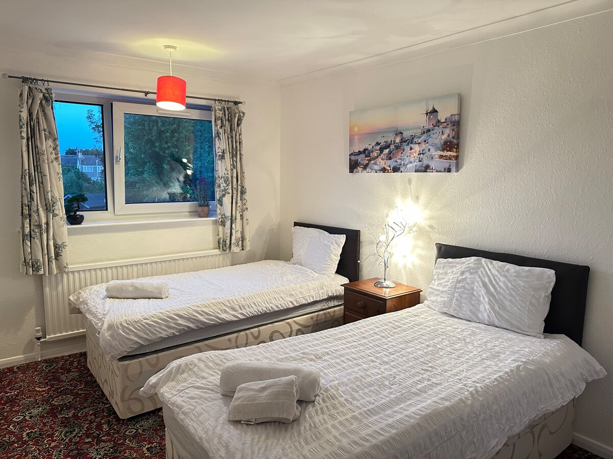 Perfekt hus i Enderby, Leicestershire, med en vennlig, varm og hjemlig følelse. Tre soverom med fem senger. Én dobbeltseng og fire enkeltsenger. Én enkeltseng er i samme rom som dobbeltsengen. Det ligger veldig nærme M1-krysset 21.