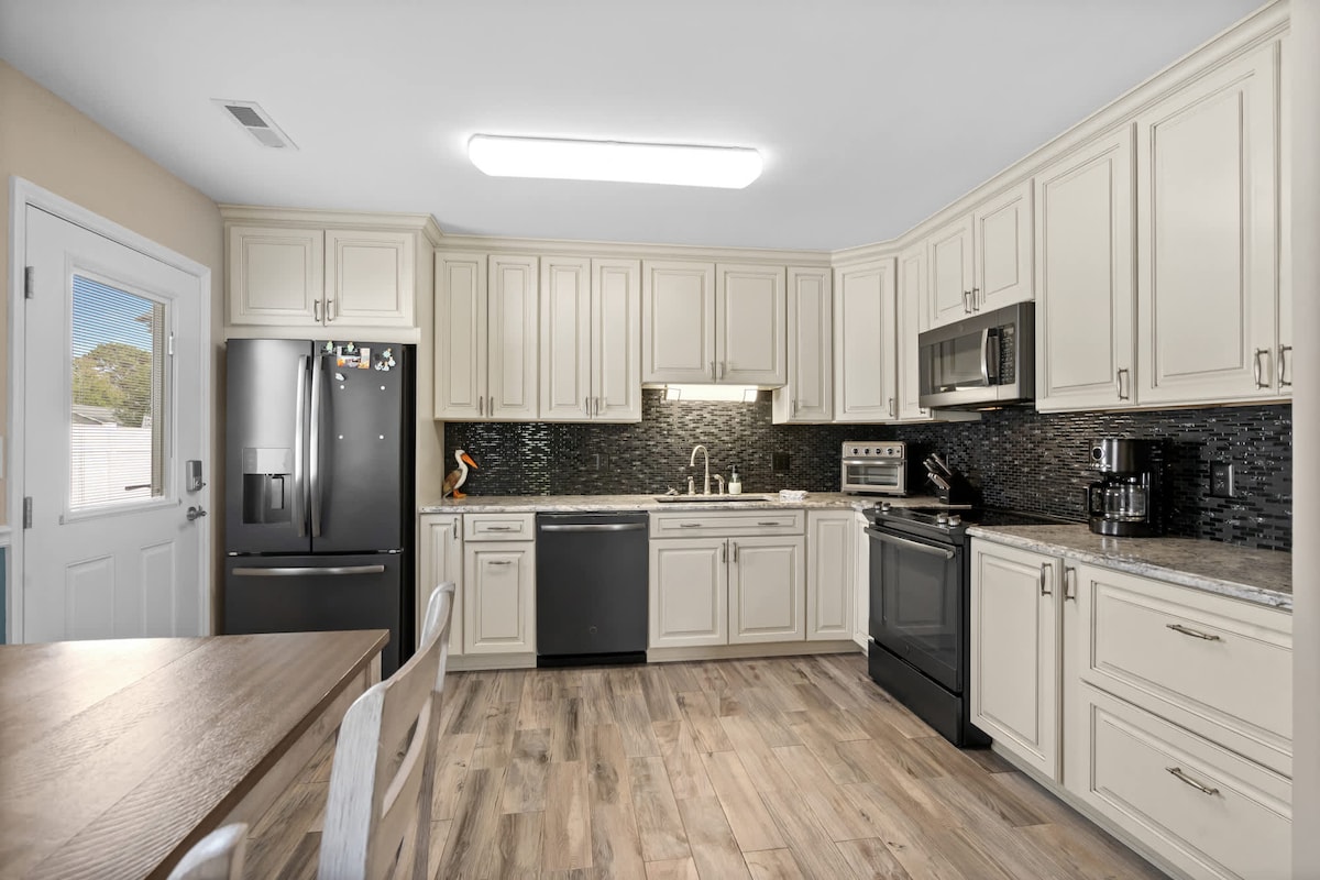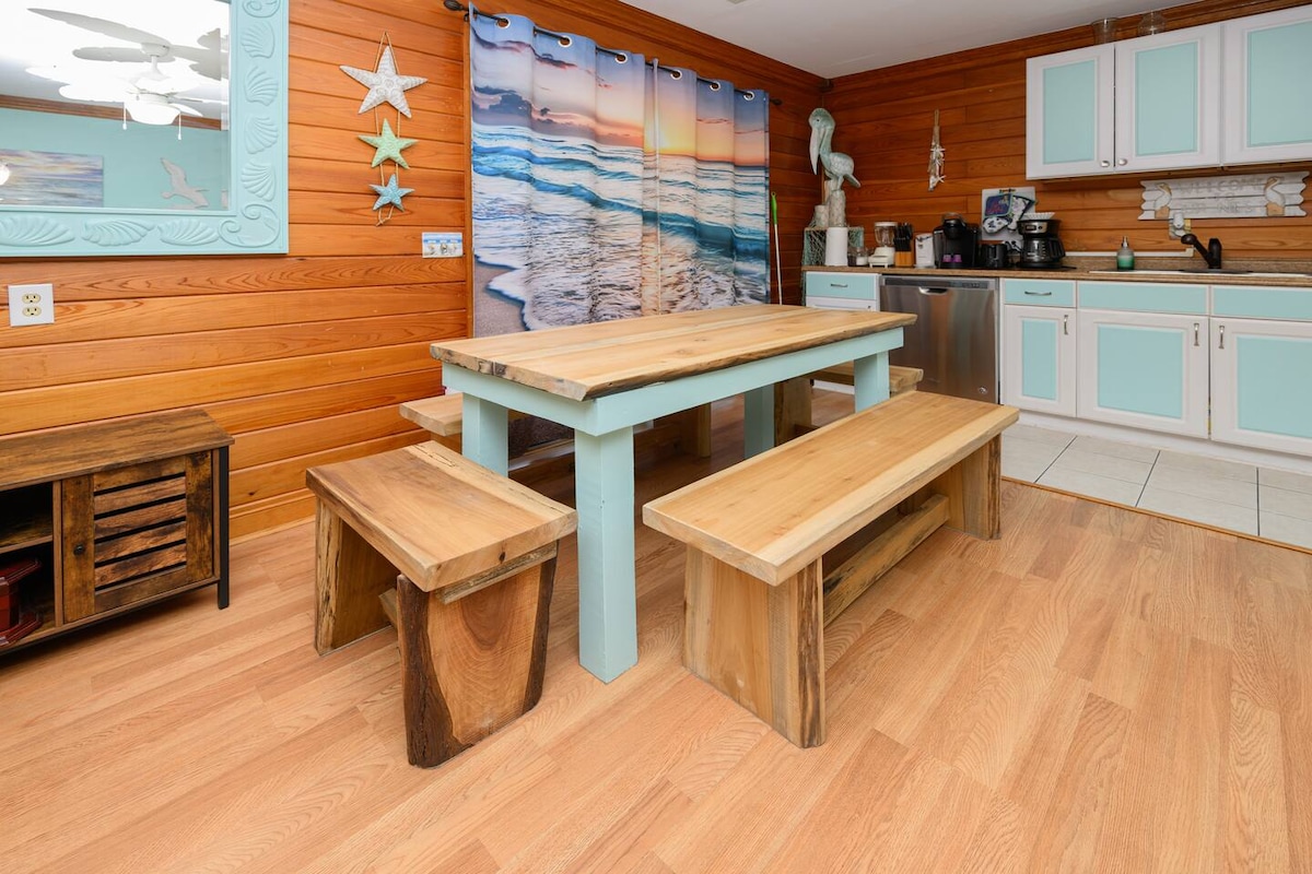 Tre kvartaler til restauranter og butikker. Ti kvartaler fra Surfside Beach. I nærheten av Market Common (7 miles), Myrtle Beach (9 miles), Charleston eller Wilmington (70 miles). Ny oppussing i 2022 med alle nye møbler og apparater. Boligområde – enkel golfbiltur til Surfside ved havet. Hunder er velkommen mot et gebyr på 35 USD per hund. Hovedsoverommet har eget bad, to andre soverom deler et annet bad. Delt planløsning for privatliv – mye lys. Inngjerdet bakgård (fullt inngjerdet, delvis sikret).