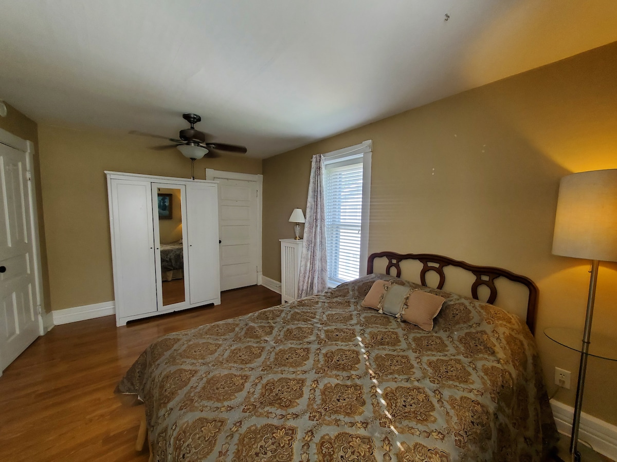 Comfy, Two Queen beds, plus one full size murphy bed: private suite within a large Victorian Styled Home within the historic, downtown Plainfield, IL. This property has free exterior parking and is 2 blocks to downtown Plainfield, consisting of many restaurants, shops, breweries, coupled with a large park & nature area with a river running throught it. A neighborhood pool, parks and more. Is near Naperville, Crest Hill, Shorewood, Joilet, Bolingbrook and Romeoville. 30yrs+ to reserve