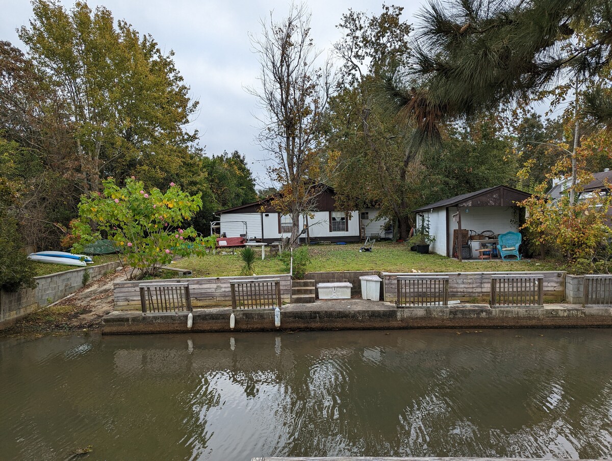 Velkommen til livet på innsjøen! Dette koselige oppholdet er nylig renovert, vil garantert skape gode minner med familie og kjære venner. Vi har forberedt det nøye med stilig innredning inspirert av innsjøen, både inne og ute, og vi planlegger å få deg på besøk år etter år! Fisk fra bryggen i bakgården, utforsk kanalen på padlebrett, nyt en solnedgangsmiddag på vannet eller kjør en time for å besøke det historiske sentrum av Charleston på en dagstur. Vi ser frem til besøket ditt! (Vi er også kjæledyrvennlige – $ 85 per kjæledyr, maks to.)