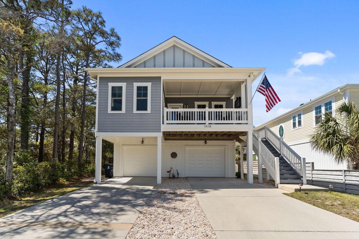 Perfekt for store familier, bryllupsgjester og gruppereiser til stranden. Med tre hovedsuiter og flere samlingsområder kan alle ha privatliv, samtidig som de kan nyte tiden sammen. Huset ligger bare noen minutter fra stranden og promenaden, noe som gjør det enkelt for hele gruppen å nyte Carolina Beach. Gå til stranden, strandpromenaden, restauranter og kaffe. Et sjeldent oppsett så nær stranden, hjemmet er designet for komfort og privatliv slik at alle kan være sammen uten å føle seg overfylt.