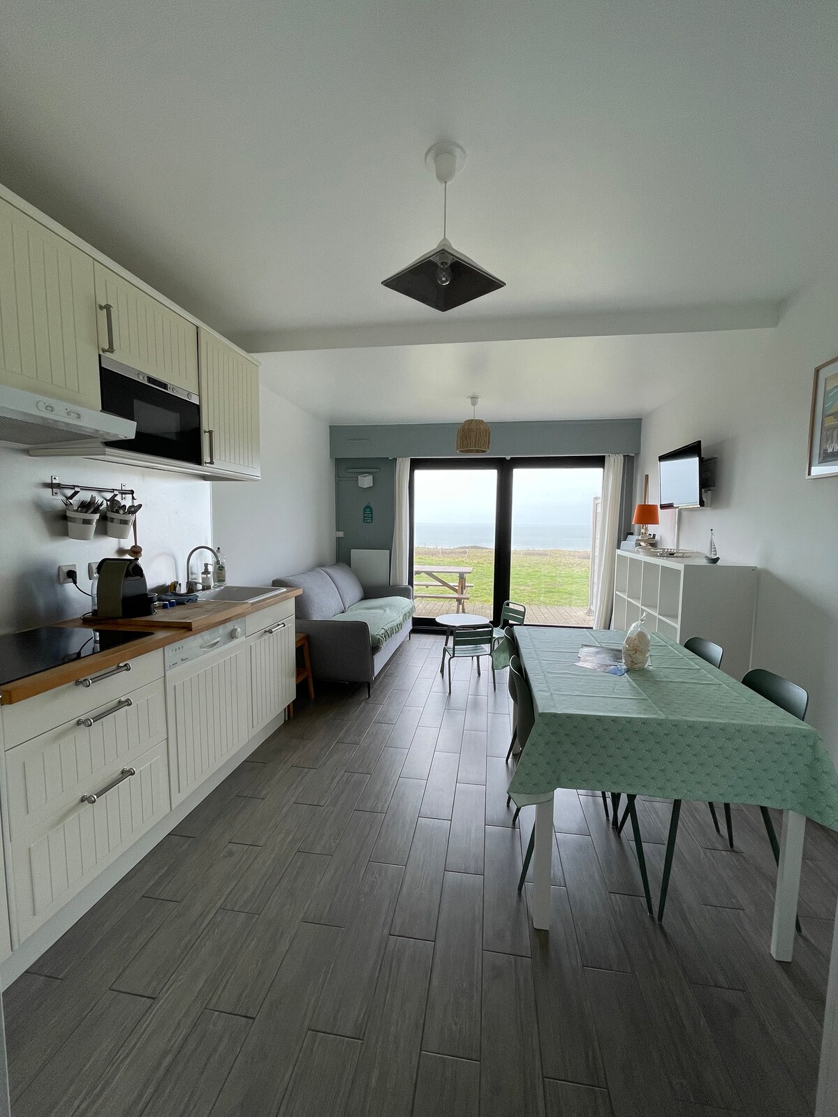 Studio 30 m2 The Natural i WIMEREUX. Stuen har en vakker terrasse med fantastisk utsikt mot havet og den japanske hagen. Komfortabelt, utstyrt kjøkken, spiseplass, oppbevaringsmøbler, oppbevaringsseng + to innebygde deler (dør mellom de to delene for privatliv). NB: Håndklær og sengetøy er ikke inkludert. TV og trådløst nettverk uten ekstra kostnad. Privat parkering. Tursti ved foten av boligen + fasiliteter, apotek og restaurant innenfor fem minutters gange. Ingen kjæledyr tillatt.